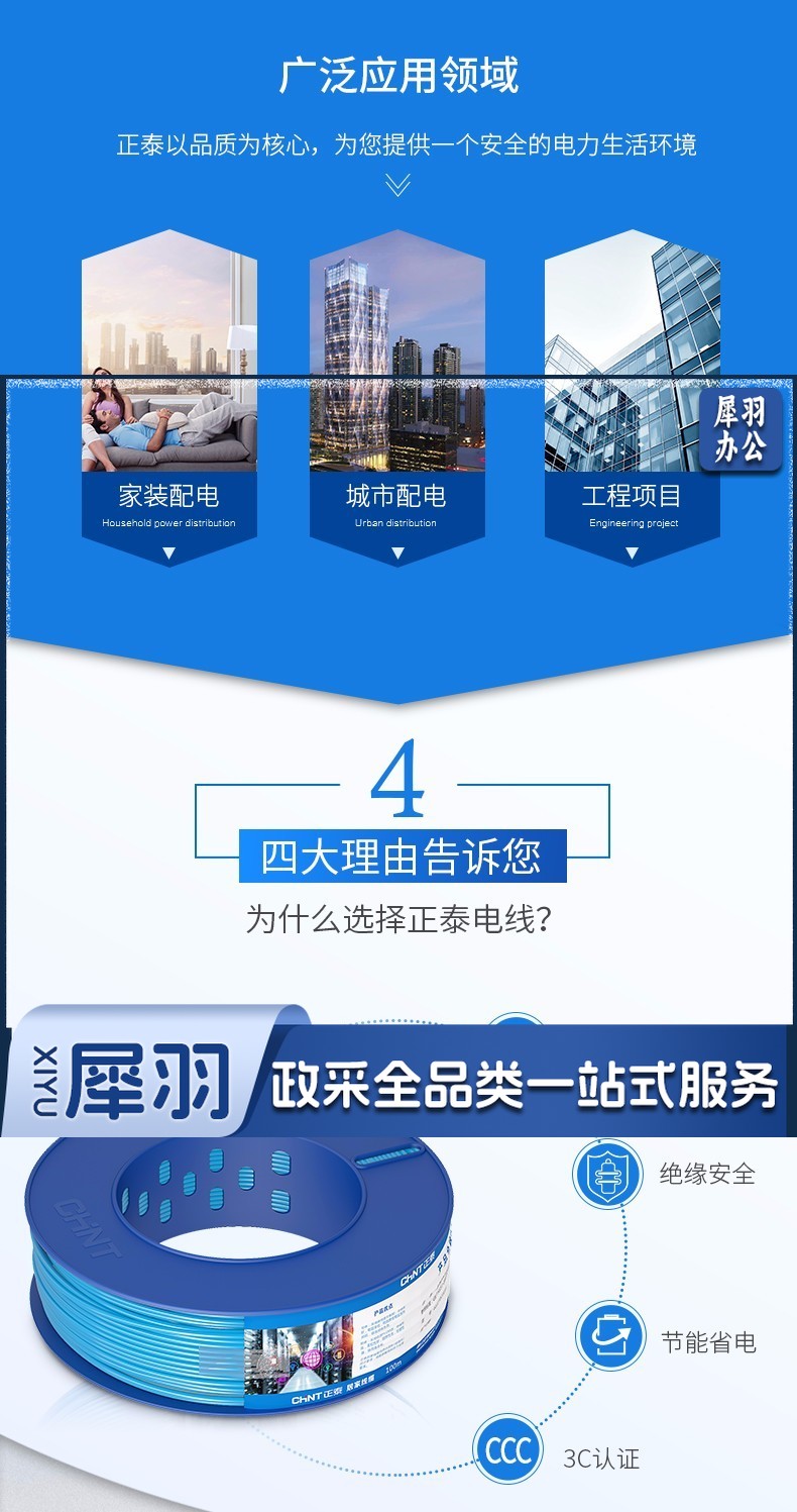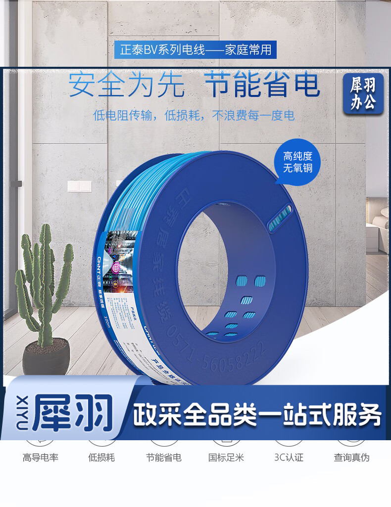 正泰(CHNT)电线电缆BV4平方单芯单股铜线国标家装铜芯电线100米