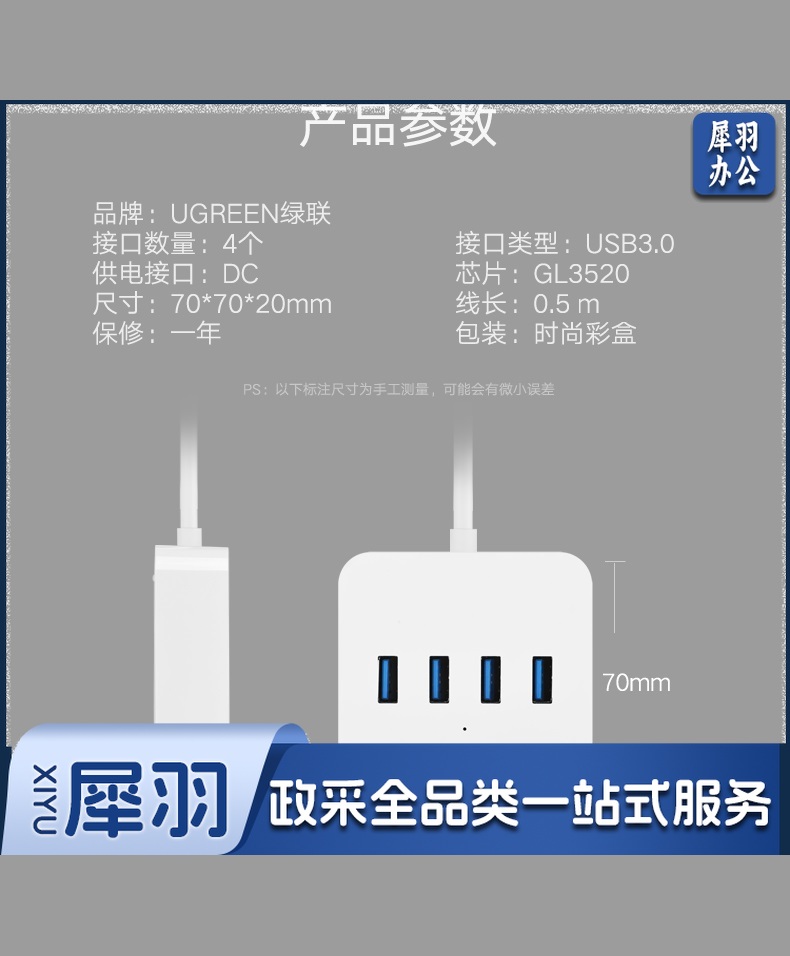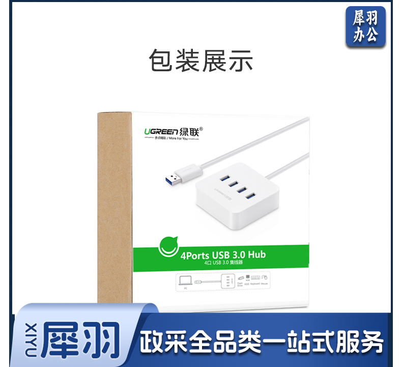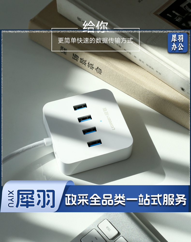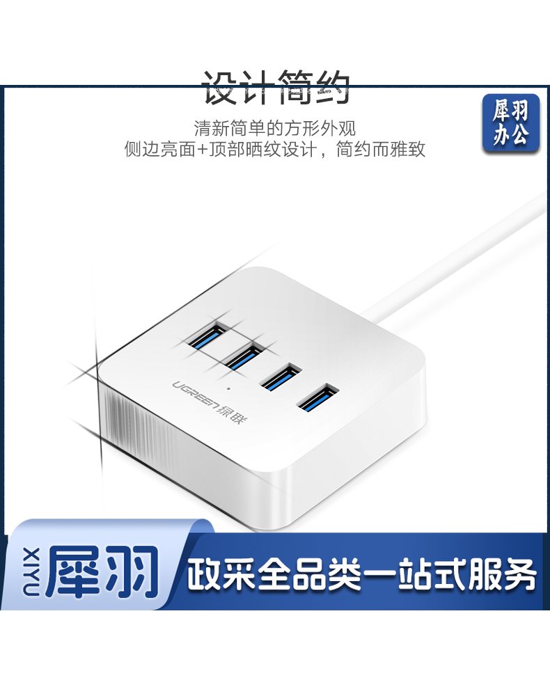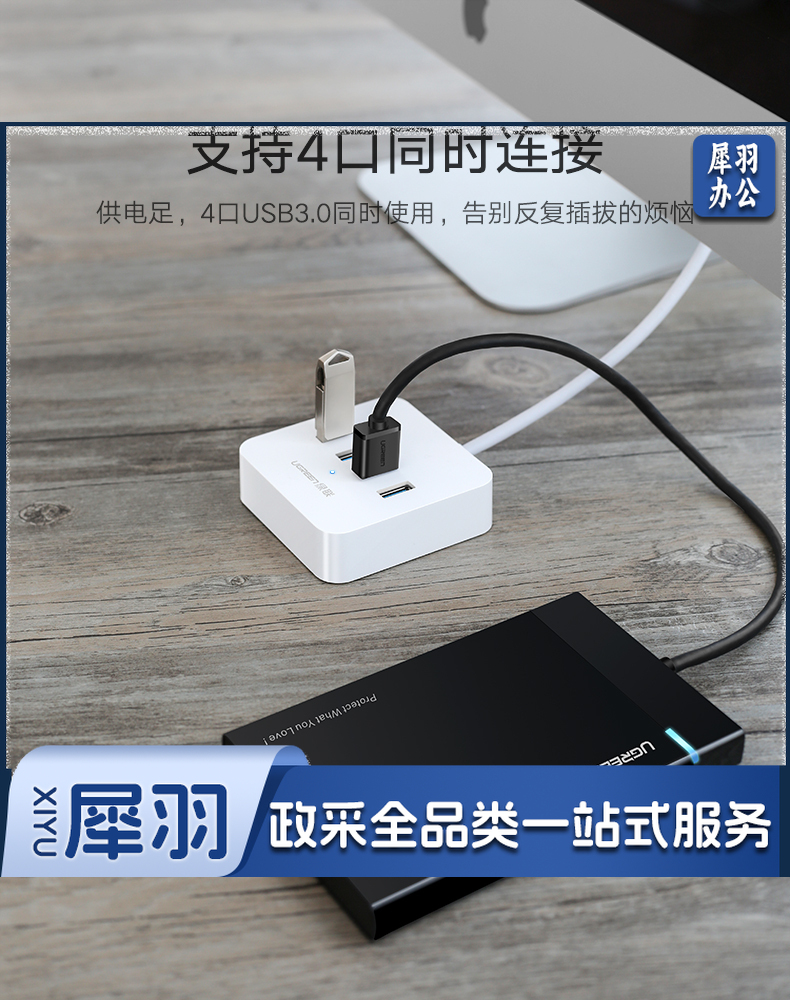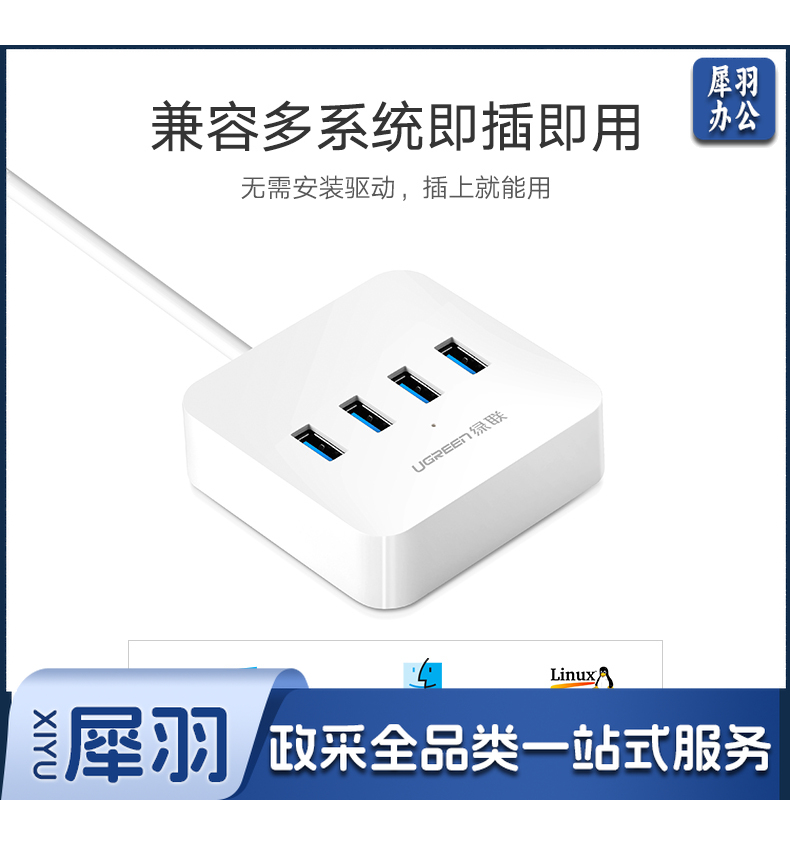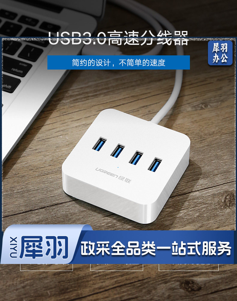 1100696856EA 绿联 30201 集线器 分线器 USB3.0 HUB 4口 0.5米 白色