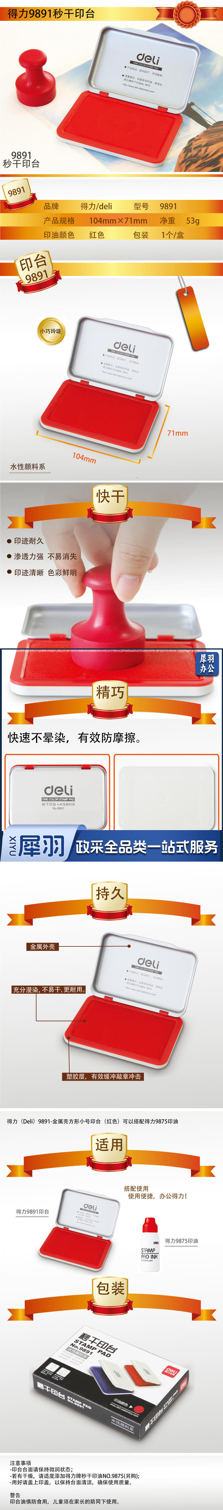 得力 9891 印台印泥 71x104mm (单位:只) 红色