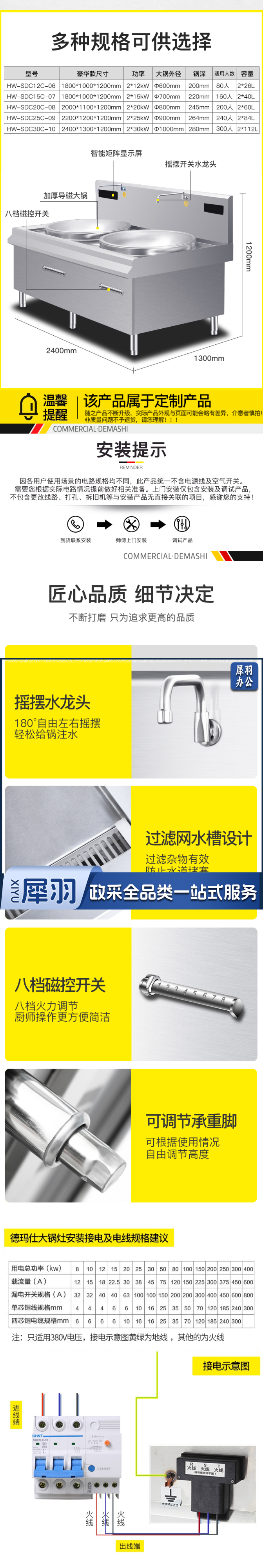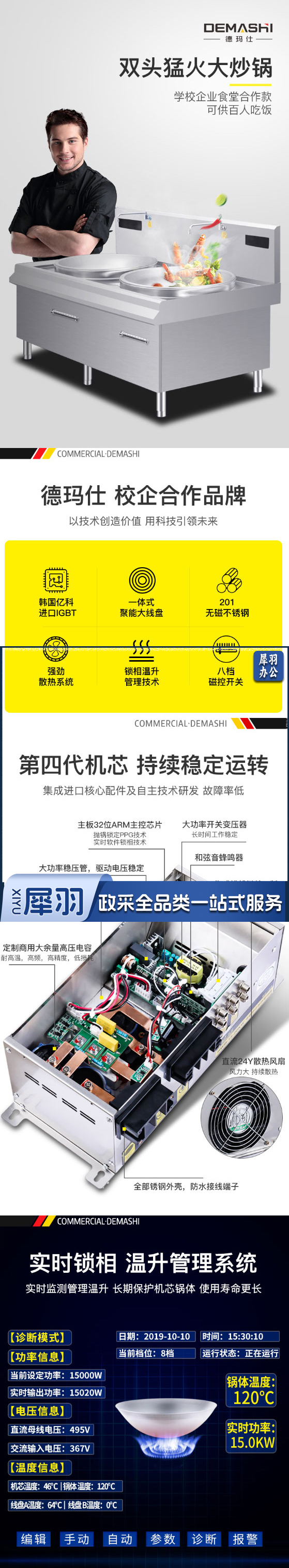 德玛仕(DEMASHI) HW-SDC20C-08(304材质) 大功率商用电磁炉 电磁大锅灶台学校食堂酒店 双头大炒锅20kw*2