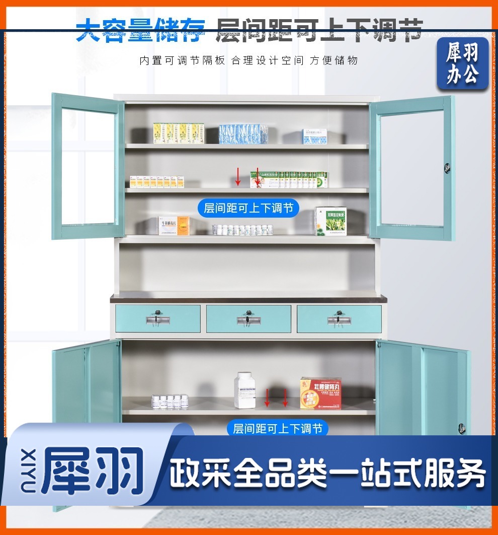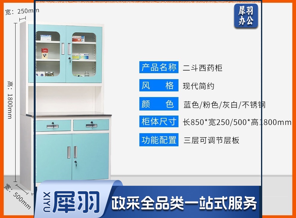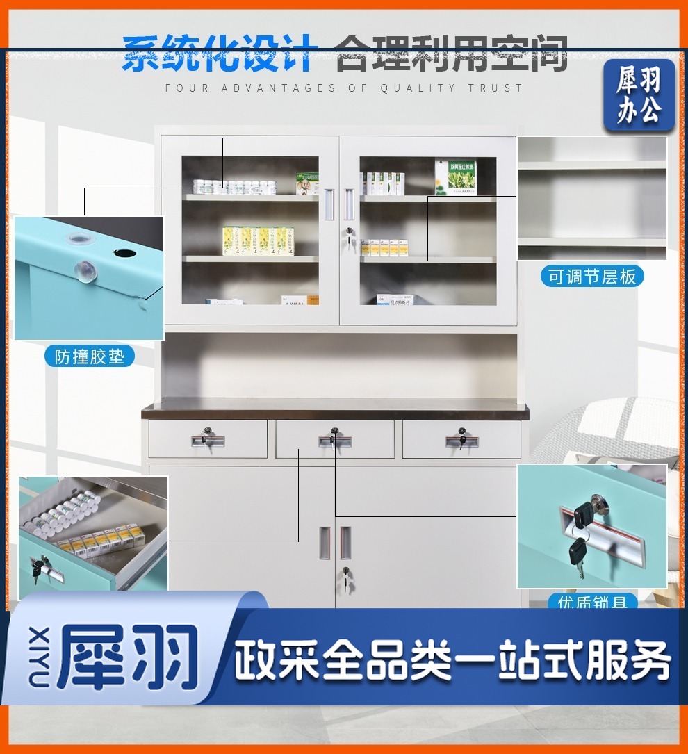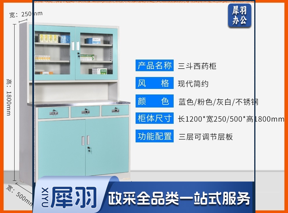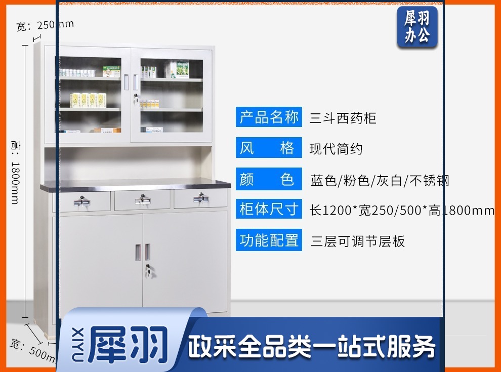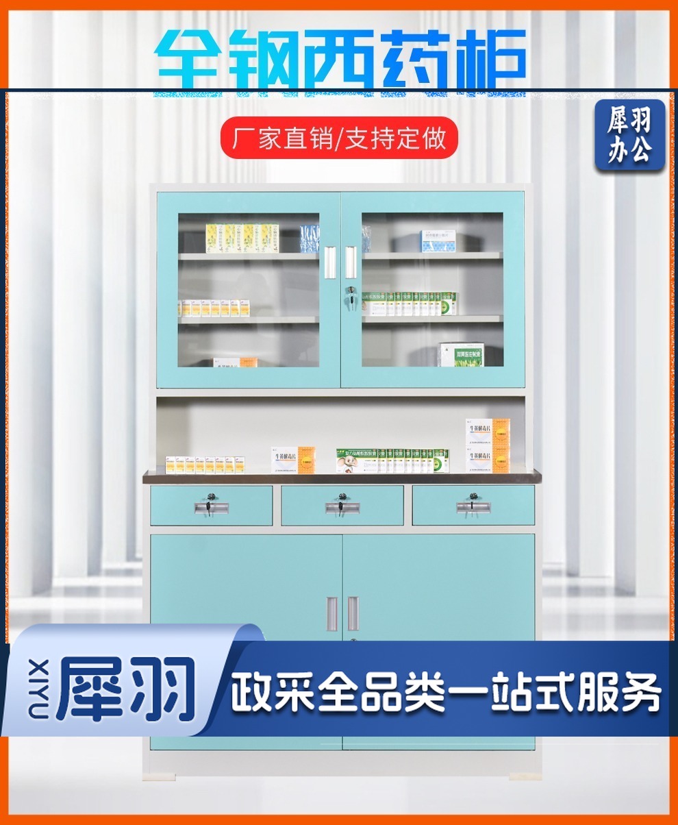 西药柜药房配药柜诊所医务室柜柜医处置台操作台药品柜调剂柜牙科药 三斗西(灰白) 安全用仪器