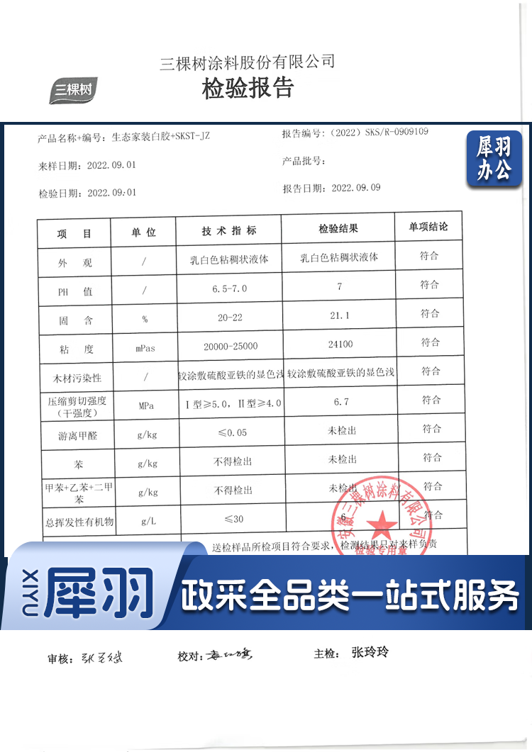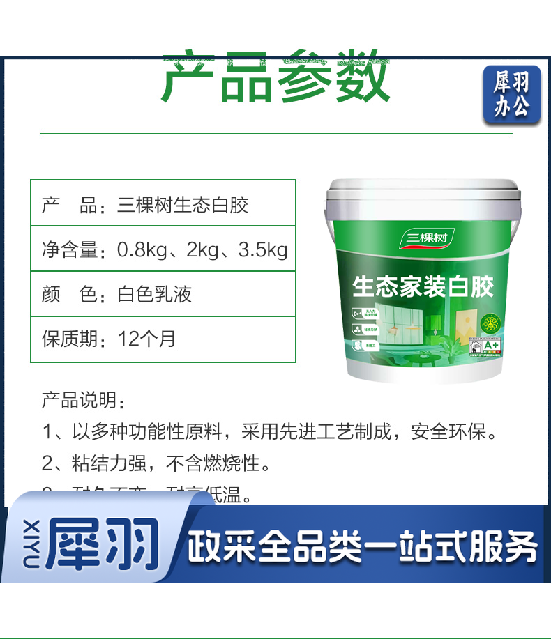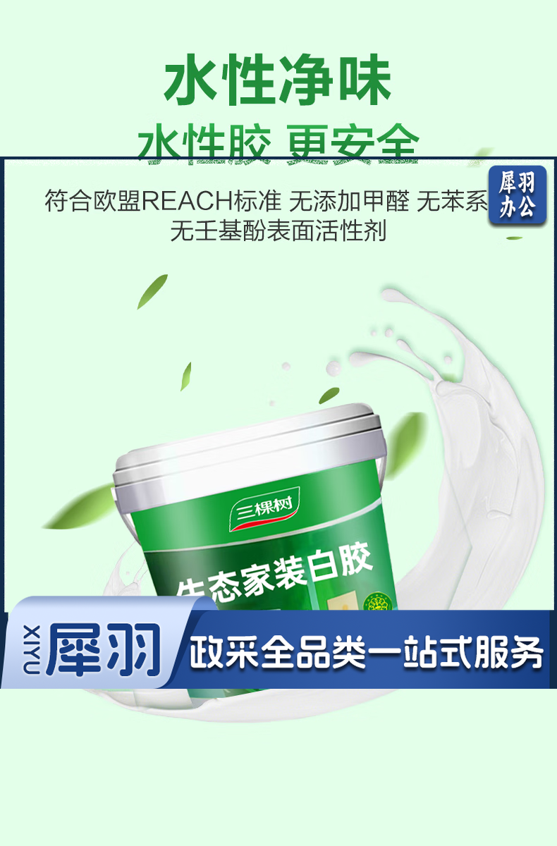 三棵树生态白胶水性健康白乳胶强力胶高粘力板材家具木工手工 环保型白胶净重15kg