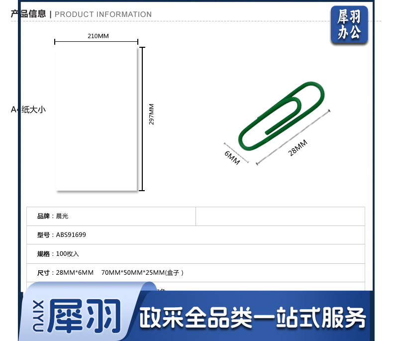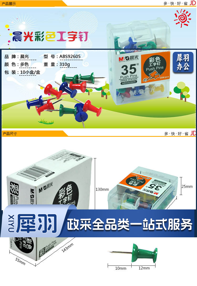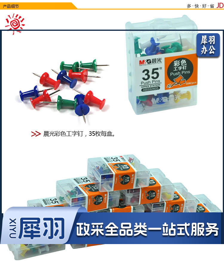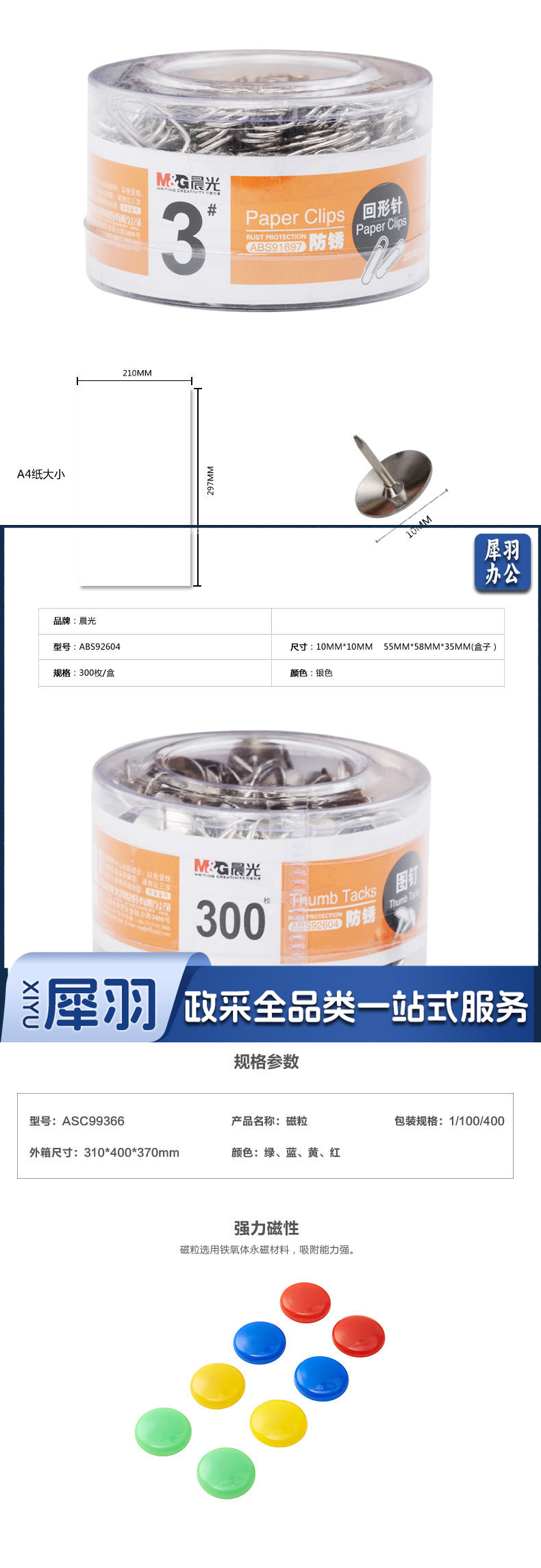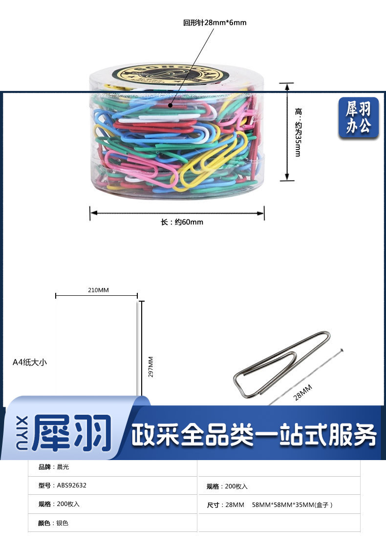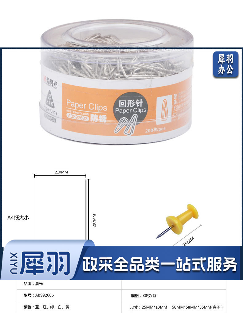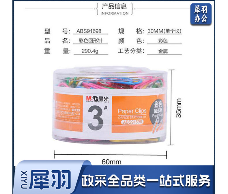 晨光(M&G) 晨光文具 彩色回形针/工字钉/大头针/图钉/磁力/桌面小五金办公套装 筒装 3号金属回形针91697 1盒