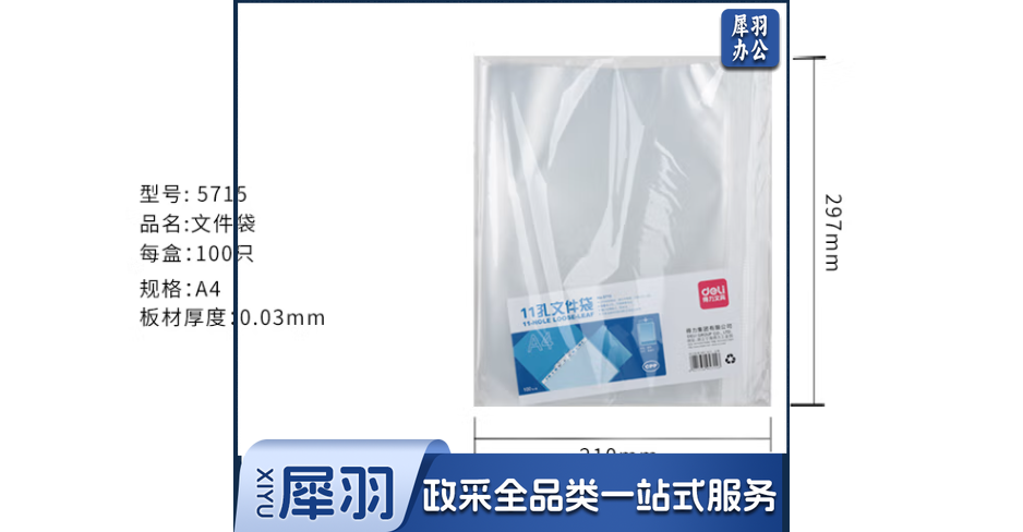 得力 deli 得力5715 11孔资料袋(透明)(100只/包)