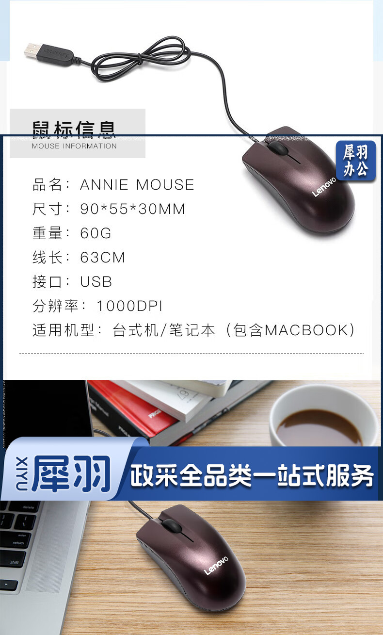 联想(Lenovo)鼠标笔记本电脑有线鼠标办公家用苹果