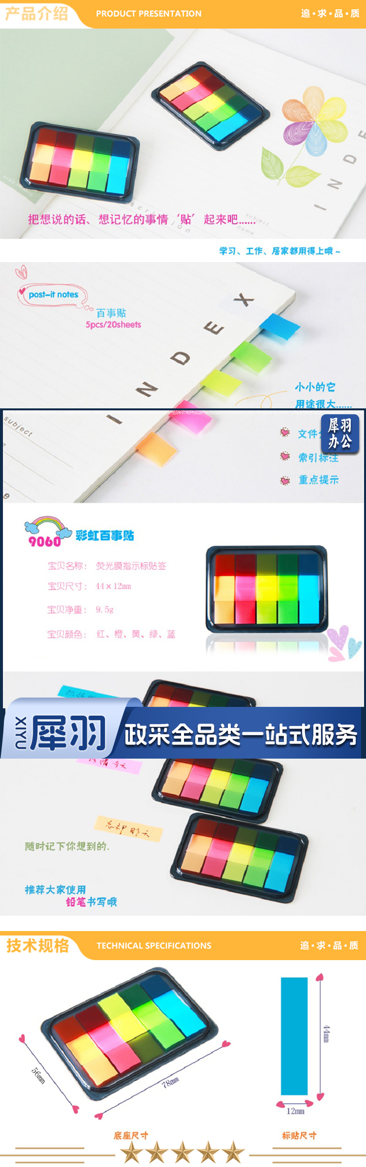 得力 deli 9060 抽取式便利贴记事贴100张一包5色