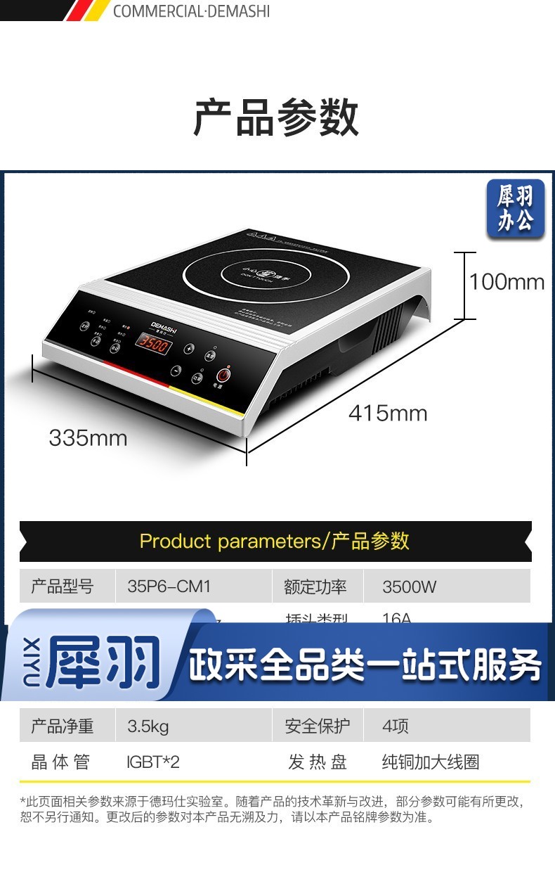 德玛仕(DEMASHI)35P6-CM1 商用电磁炉大功率 【3500W丨平面八档】
