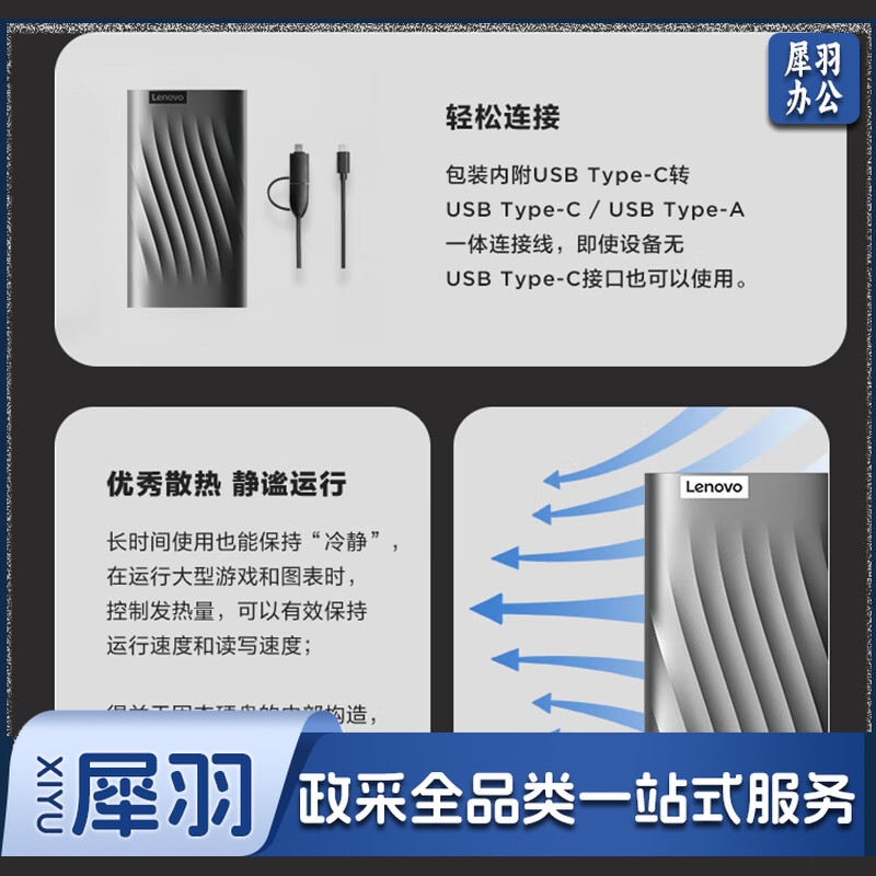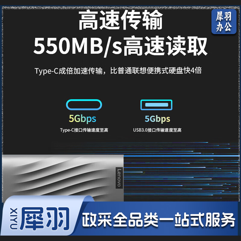 联想(Lenovo )2TB 移动固态硬盘 高速SSD双接口 备份笔记本手机电脑 PS6