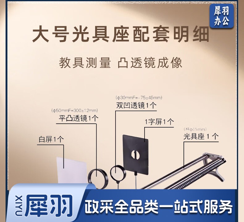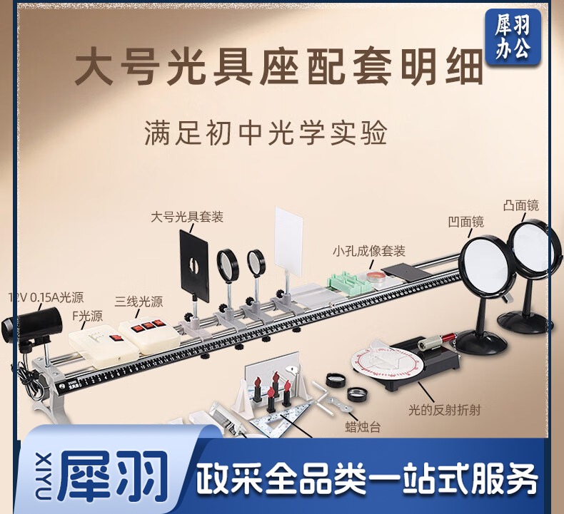 初中物理光具座光学实验器材大号凹凸透镜学生用初二七年级光学实验教具演示成像规律科学套装全套教学仪器 物理全套