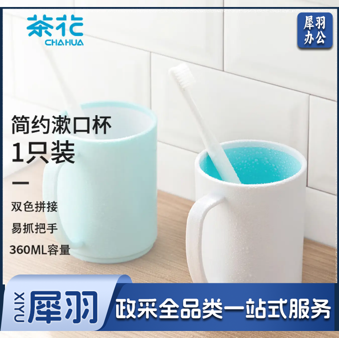 茶花 漱口杯 簌刷牙杯子马克杯 牙刷杯牙缸 洗漱杯水杯 1只装 白色