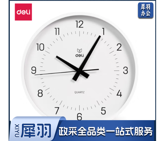 得力(deli)简约时尚挂钟 卧室客厅时间提醒 免打孔大表盘 白色 LE402
