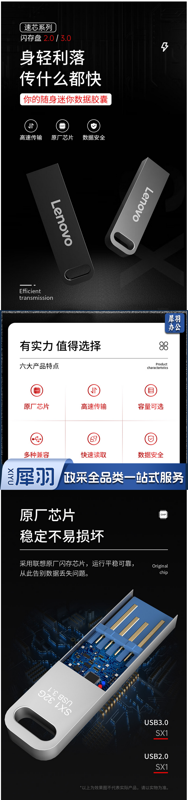 联想(Lenovo)U盘64G USB2.0速芯SX1系列U盘闪存U盘枪色