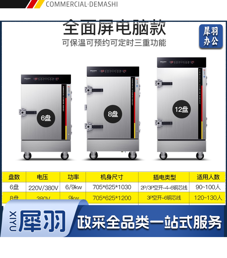 德玛仕(DEMASHI) 蒸饭柜蒸饭车 安全蒸柜蒸包炉小型单位学校 12盘预约定时保温ZFG-12D 380V