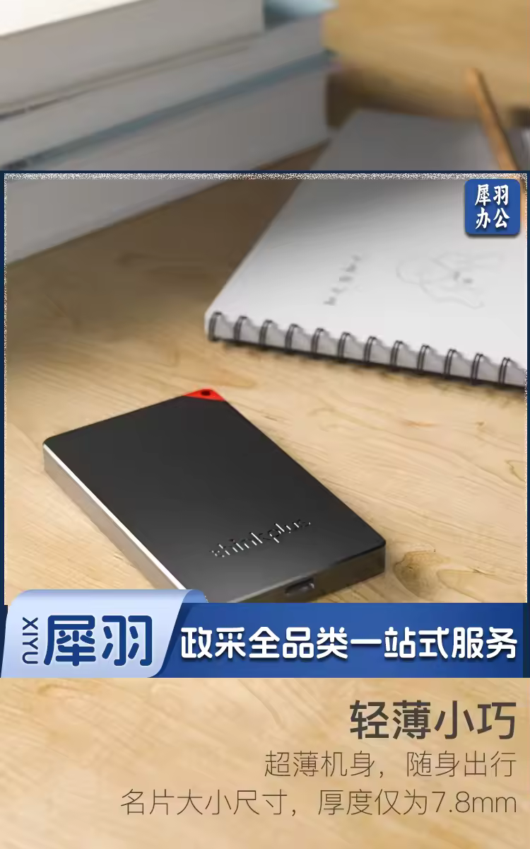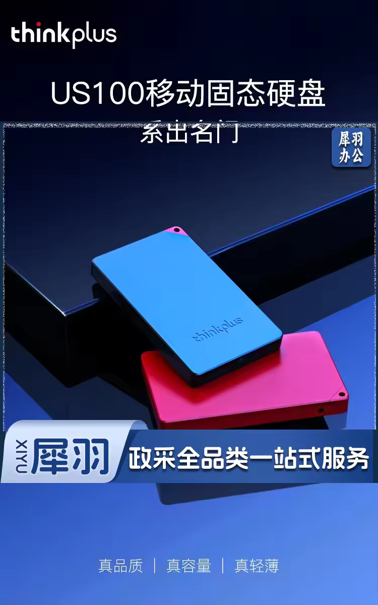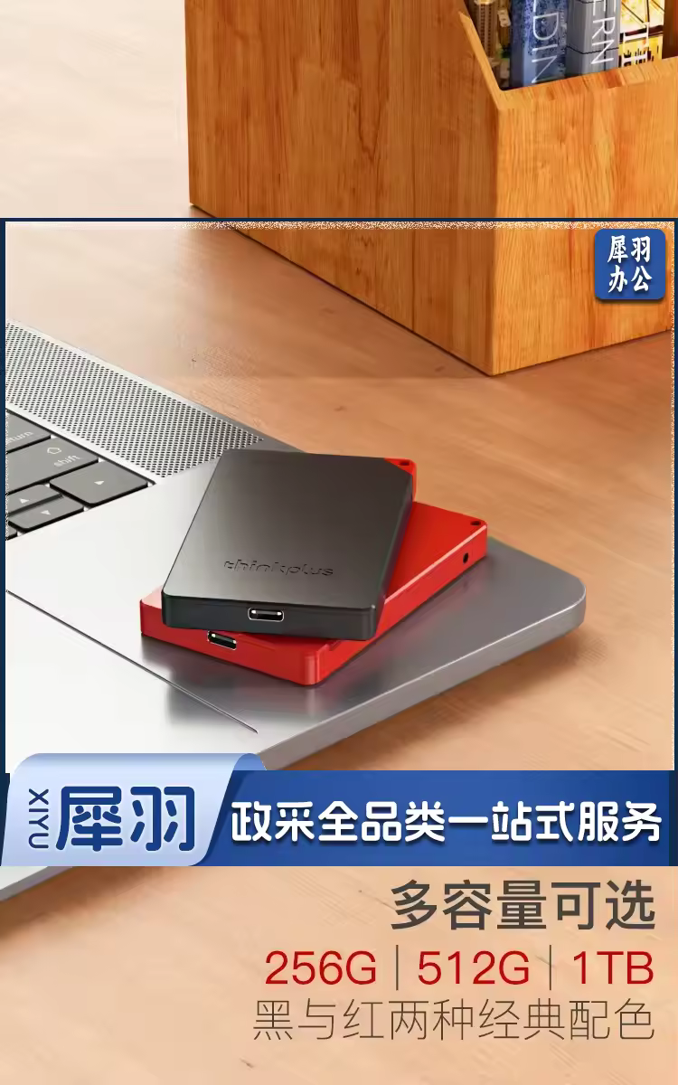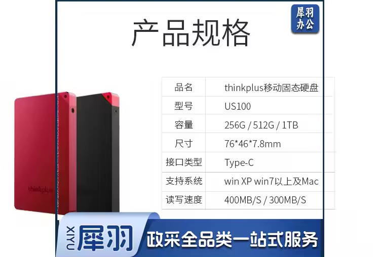 联想 thinkplus移动固态硬盘 USB3.1高速PSSD移动硬盘小巧便携读取400MB/S US100黑色 1T