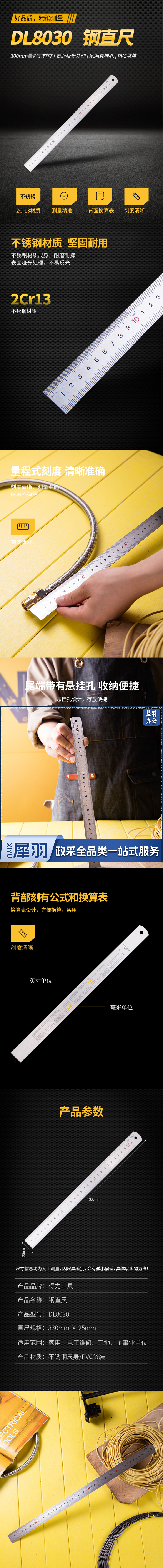 得力工具 DL8030 钢直尺300mm (单位:把)