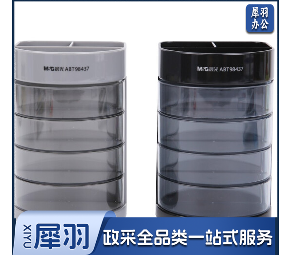 晨光 (M&G)文具四层塑胶多功能笔筒 桌面整理收纳盒 黑/灰 ABT98437 单个装 颜色随机