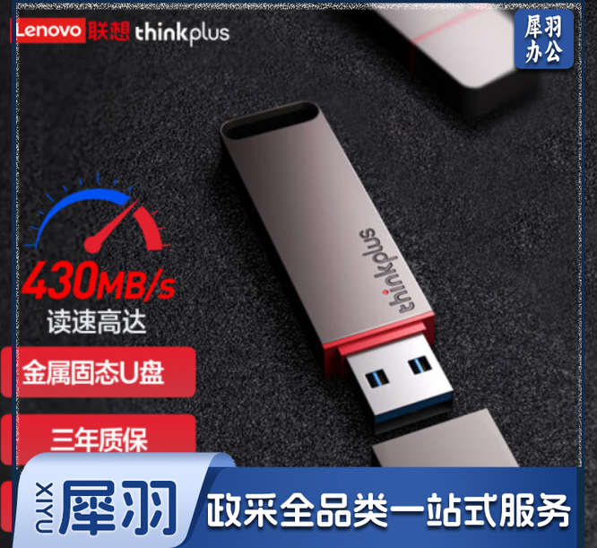 ThinkPad 联想thinkplus移动固态闪存优盘USB3.1高速传输U盘金属商务U盘电脑优盘 TU100 Pro灰色 【128G】