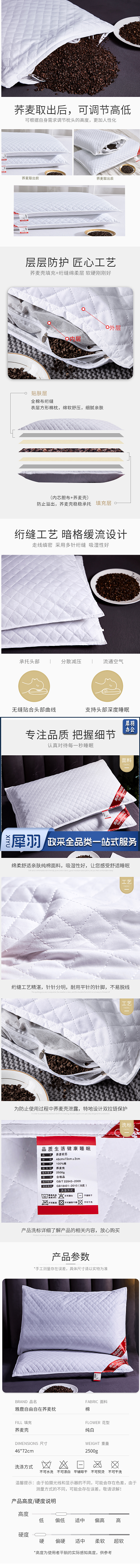 荞麦枕头 100%荞麦皮荞麦壳填充枕芯全棉花草枕约5斤颈椎枕可拆洗46*72cm单只装 纯白色