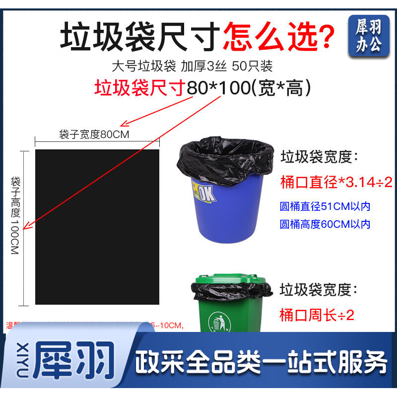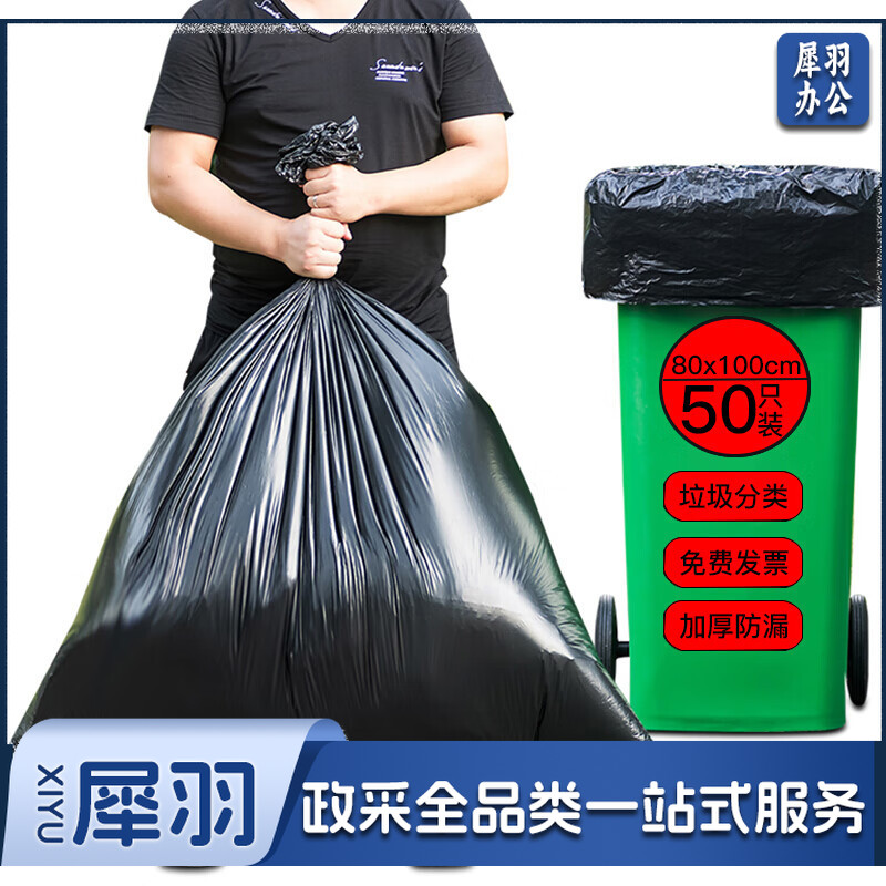 平口大号垃圾袋 黑色加厚垃圾袋商用物业平口收纳袋80*100CM