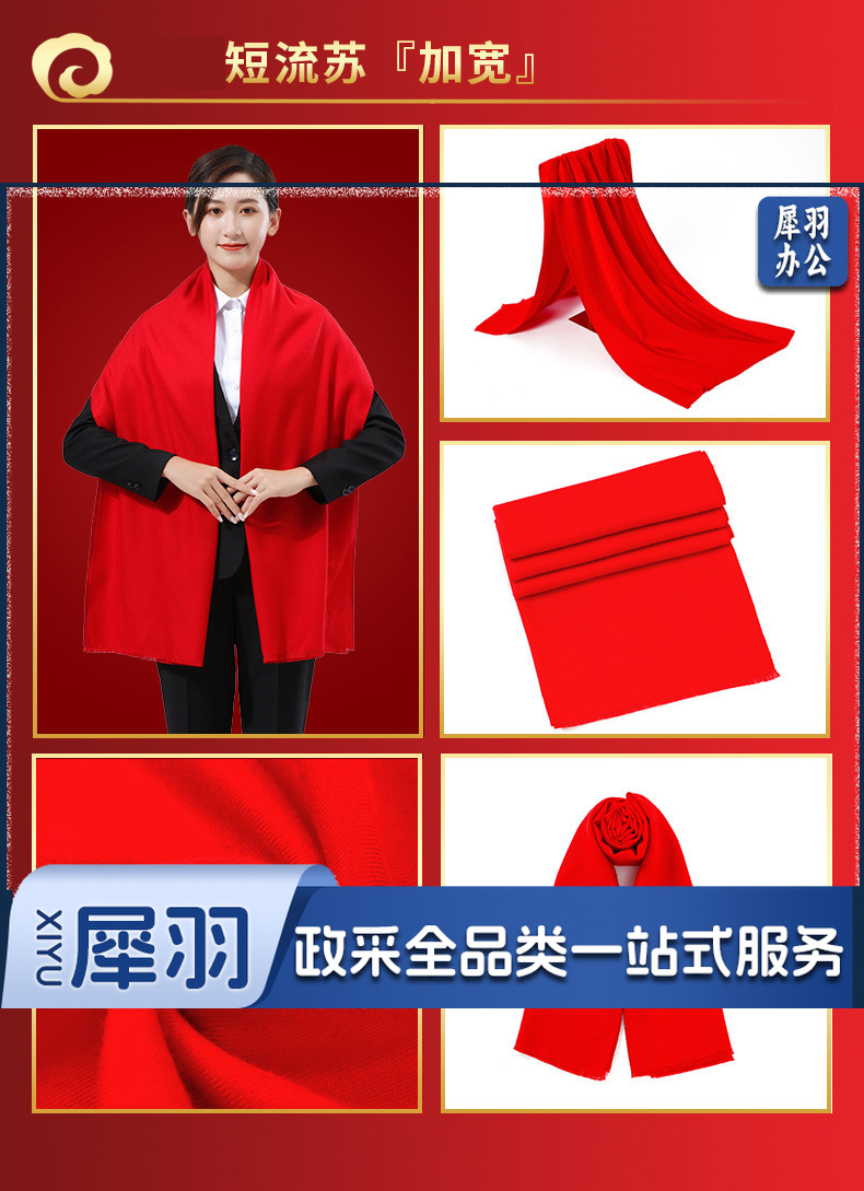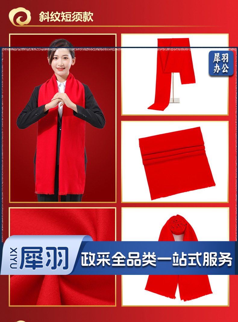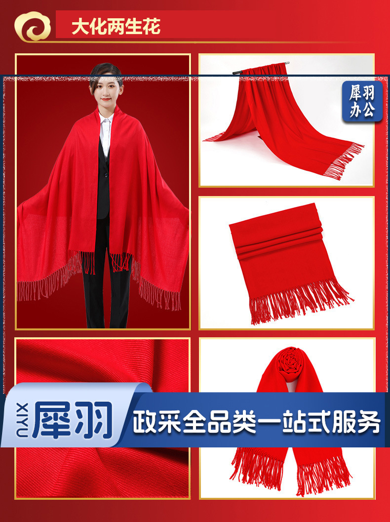 年会红围巾仿羊绒中国红围巾红色礼品刺绣双面绒A款 175cm以上
