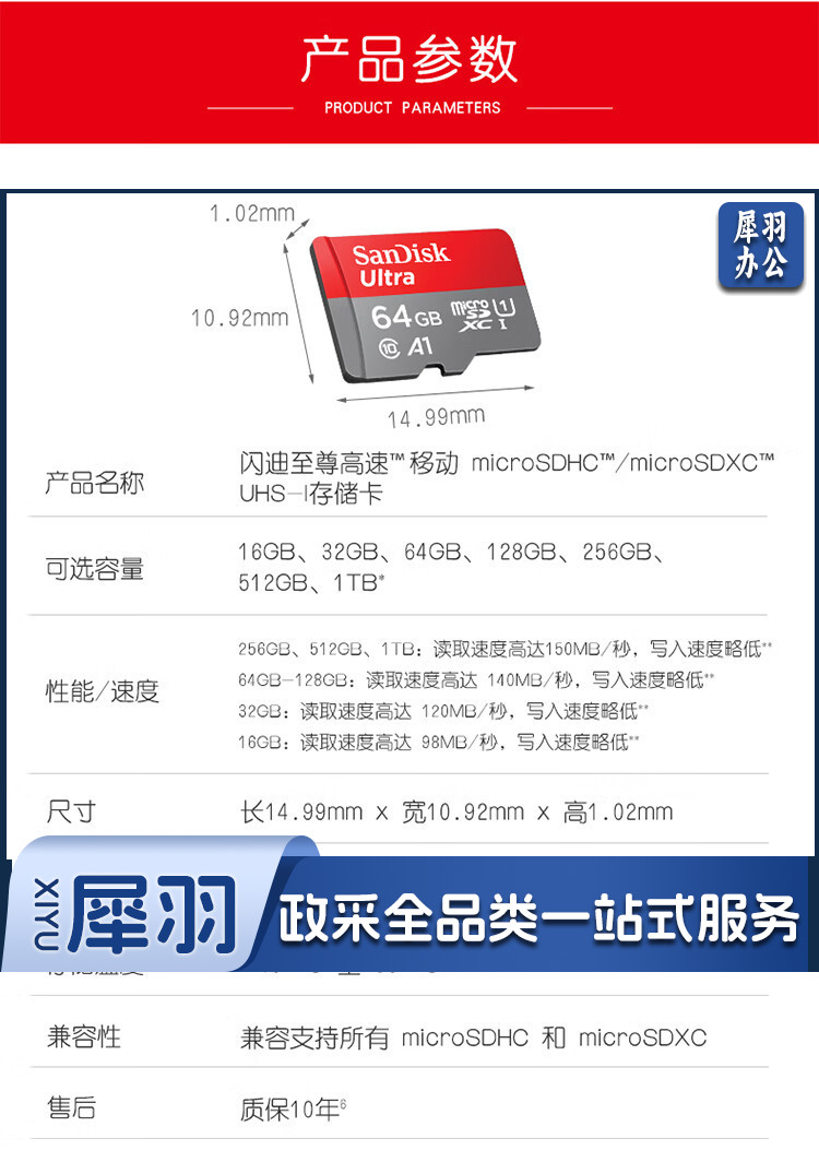 闪迪(SanDisk)64GB TF(MicroSD)存储卡