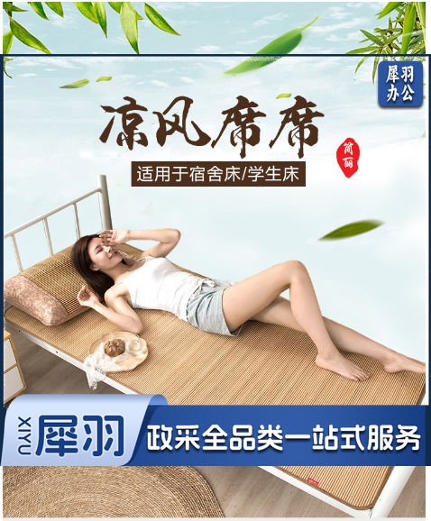 学生凉席竹席 双面竹藤凉席宿舍单人0.9米床上下铺空调席子 90*190cm(不含枕套) 简约席