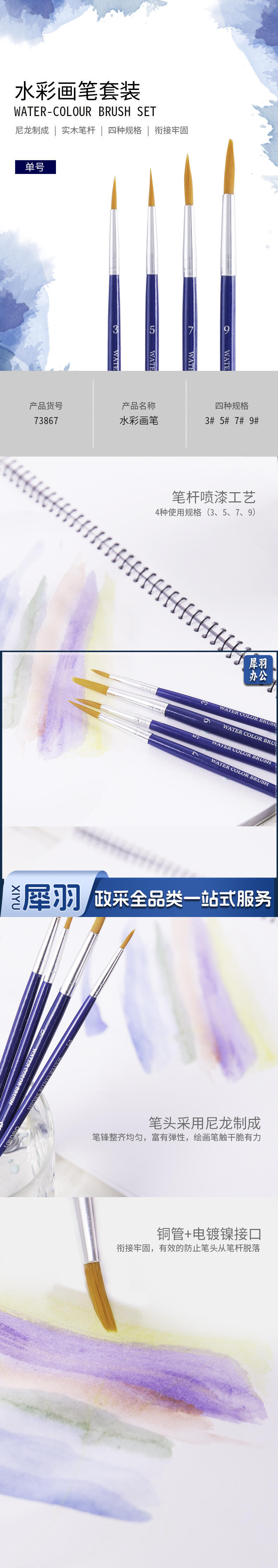得力/deli 73867 4支装水彩画笔(单位:包) 蓝