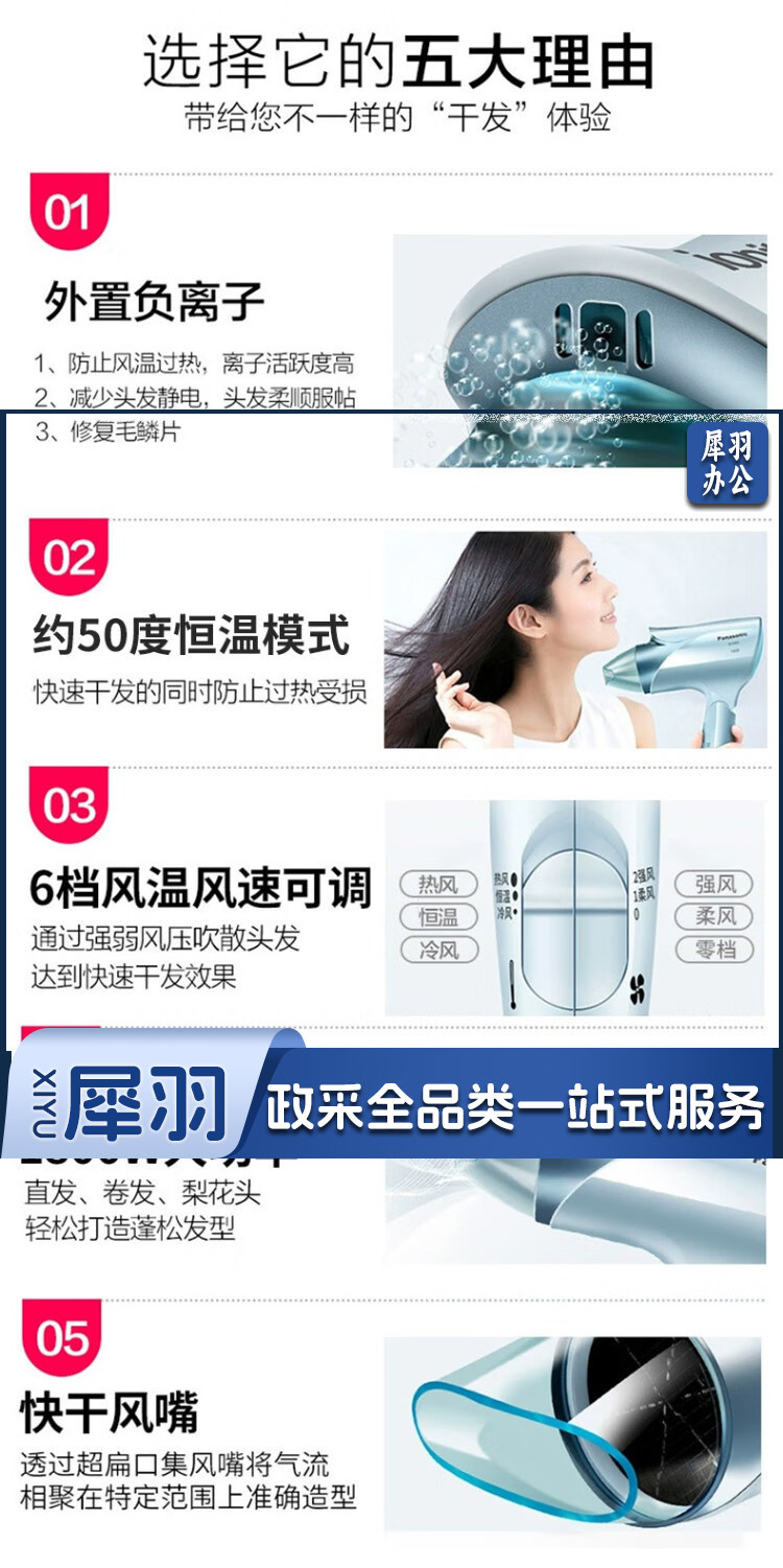 松下(Panasonic)电吹风机大功率高速大风力速干折叠便携家用老婆女朋友友负离子吹发护发电吹风筒EH-ENE2