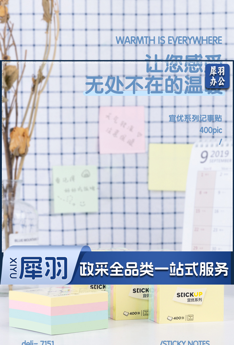 得力/deli 7151 400页4色简约便利贴便签纸 76*76mm便签本/记事贴/自粘留言本笔记本本子 办公用品 混色 (单位:包)