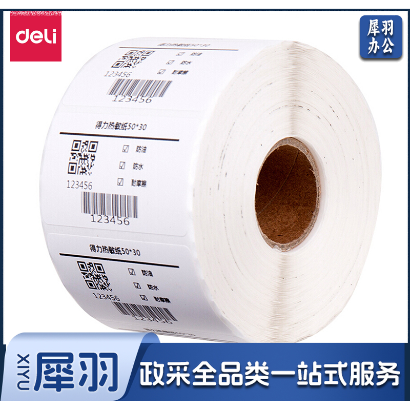 得力12003三防热敏标签纸(50*30mm-1000张)(白)(1卷/筒)