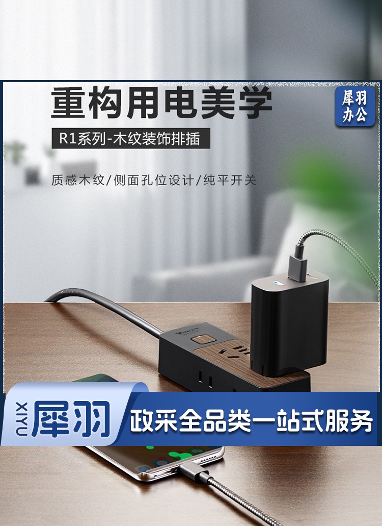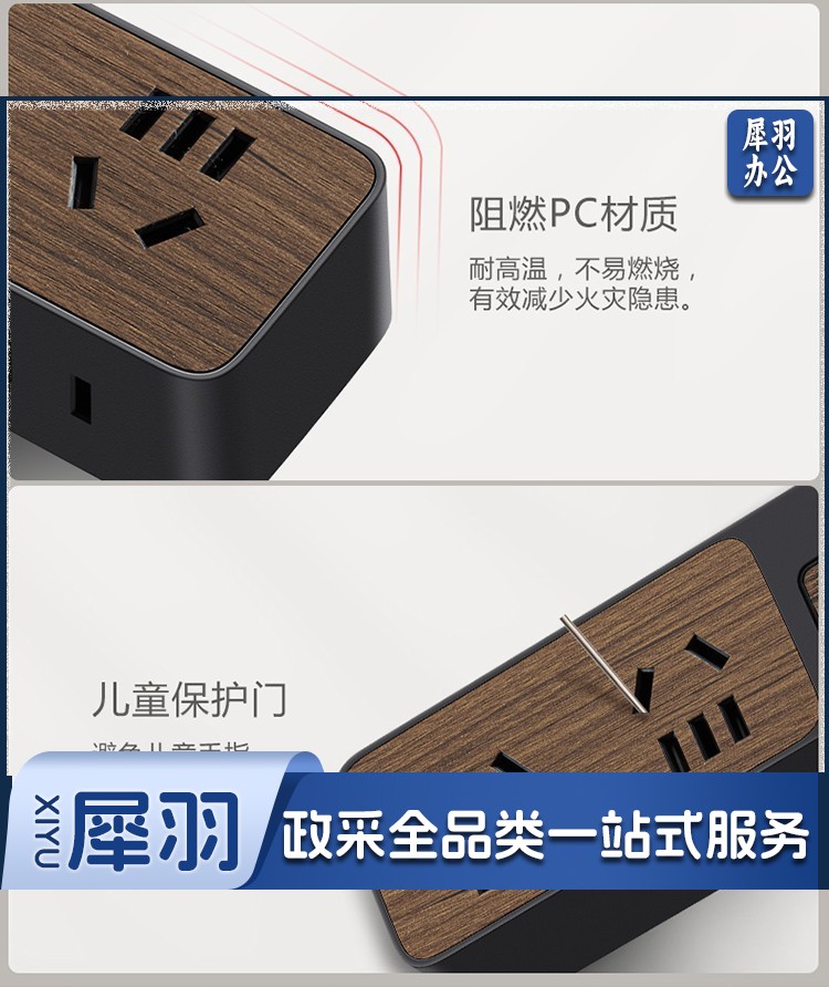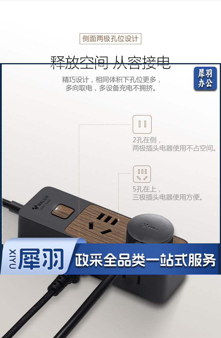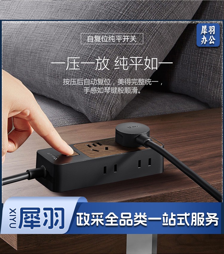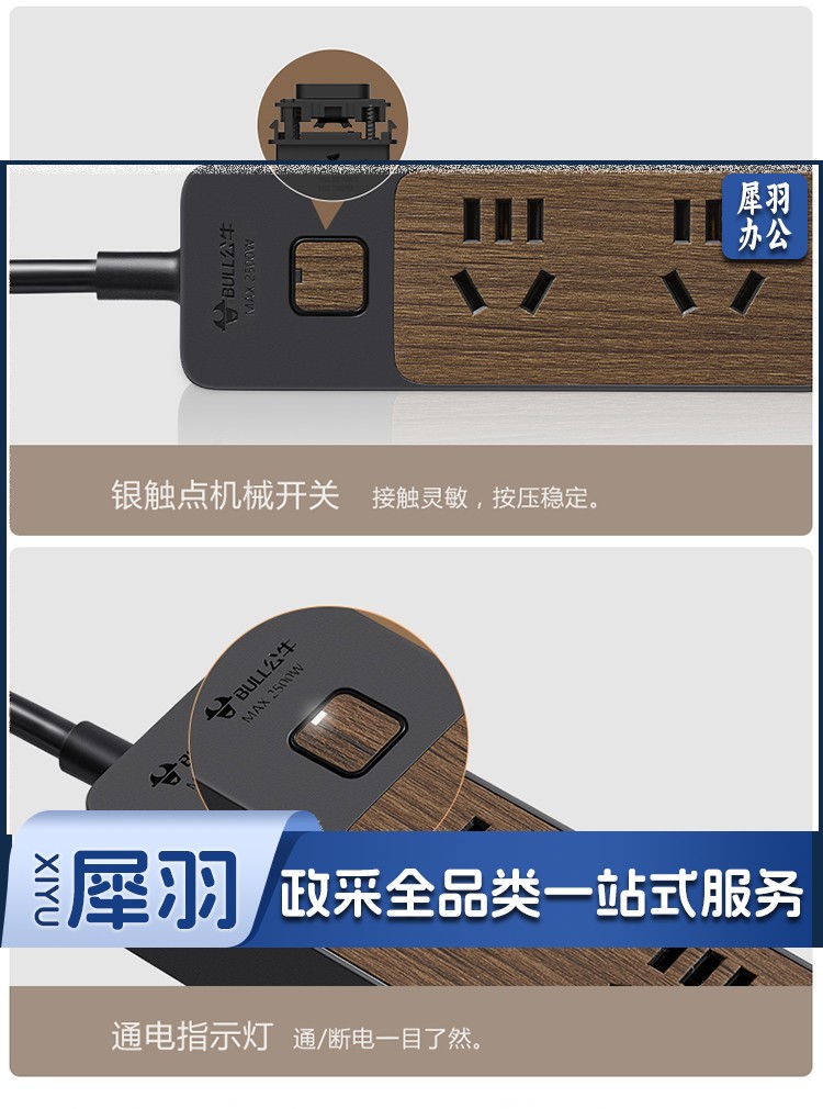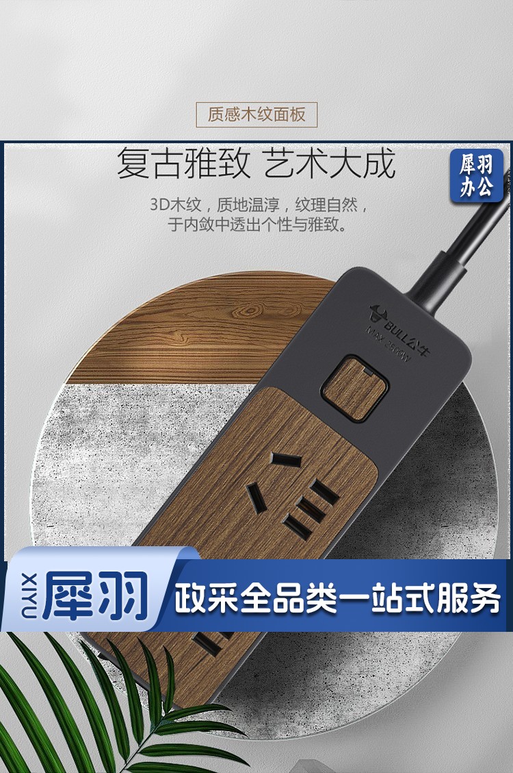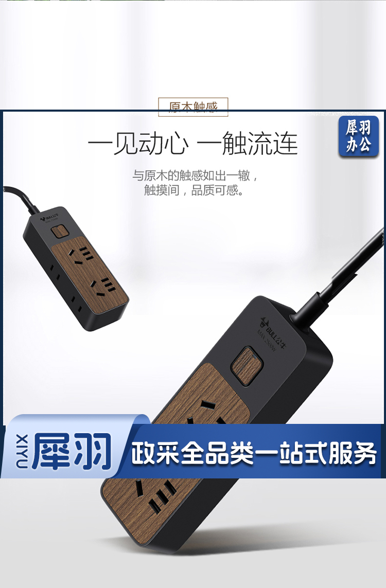 公牛(BULL)新国标插座/插线板/插排/排插/接线板/拖线板 4位总控1.8米 黑色木纹 GN-R1220
