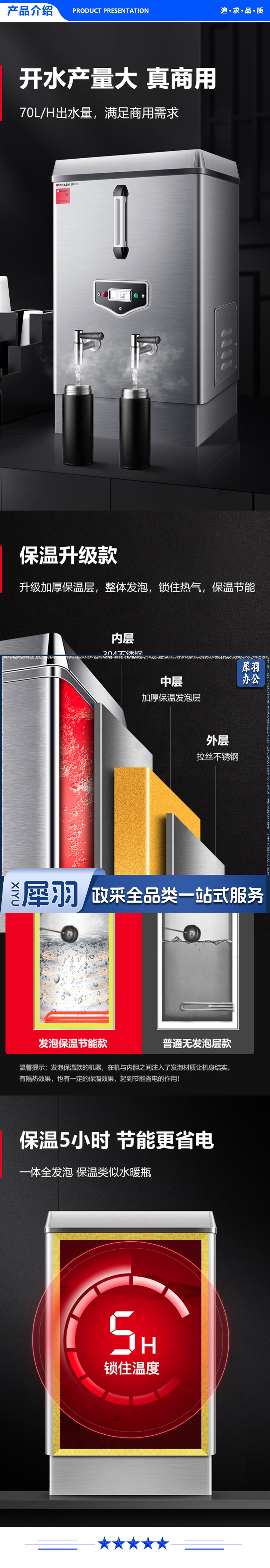 德玛仕 DEMASHI KS-60F 开水器 商用电热开水机 全自动进水 304不锈钢 烧水器 220V