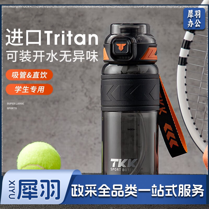 TKK学生水杯男女中小学上学专用运动水壶夏天儿童便携防摔太空杯子 火山黑800ml【进口tritan材质】