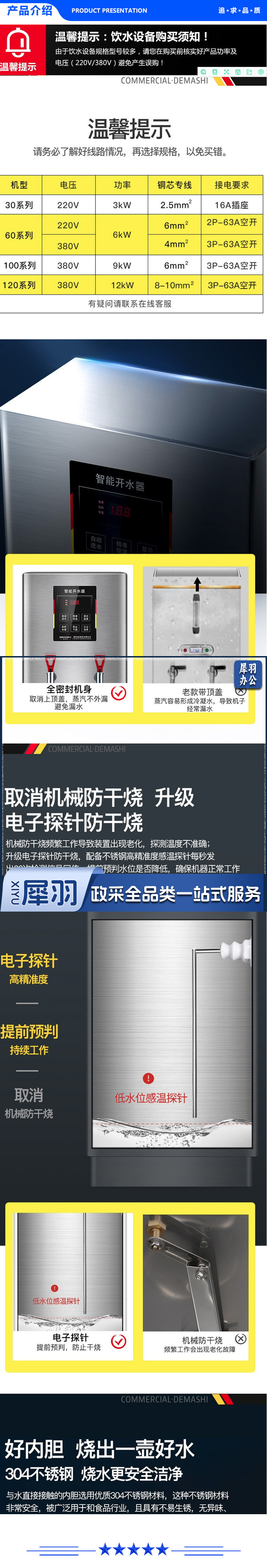 德玛仕 DEMASHI KS-60A3-2 开水器商用电热开水机全自动进水不锈钢烧水器开水炉热水桶学校工厂工地饭店饮水机 70L/H供80-100人(380V)【数显款】.