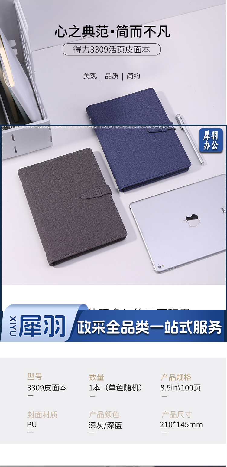 得力/deli 3309 25K 100张 活页插袋皮面本(单位:本) 205mm*143mm 混