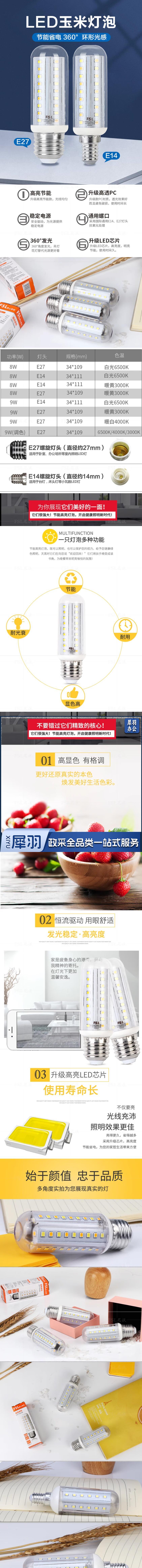 佛山照明 led灯泡玉米灯9W白光6500K e27螺口节能灯