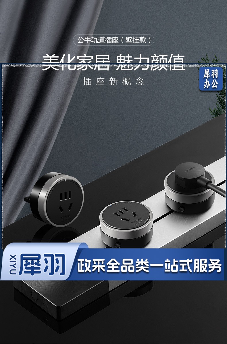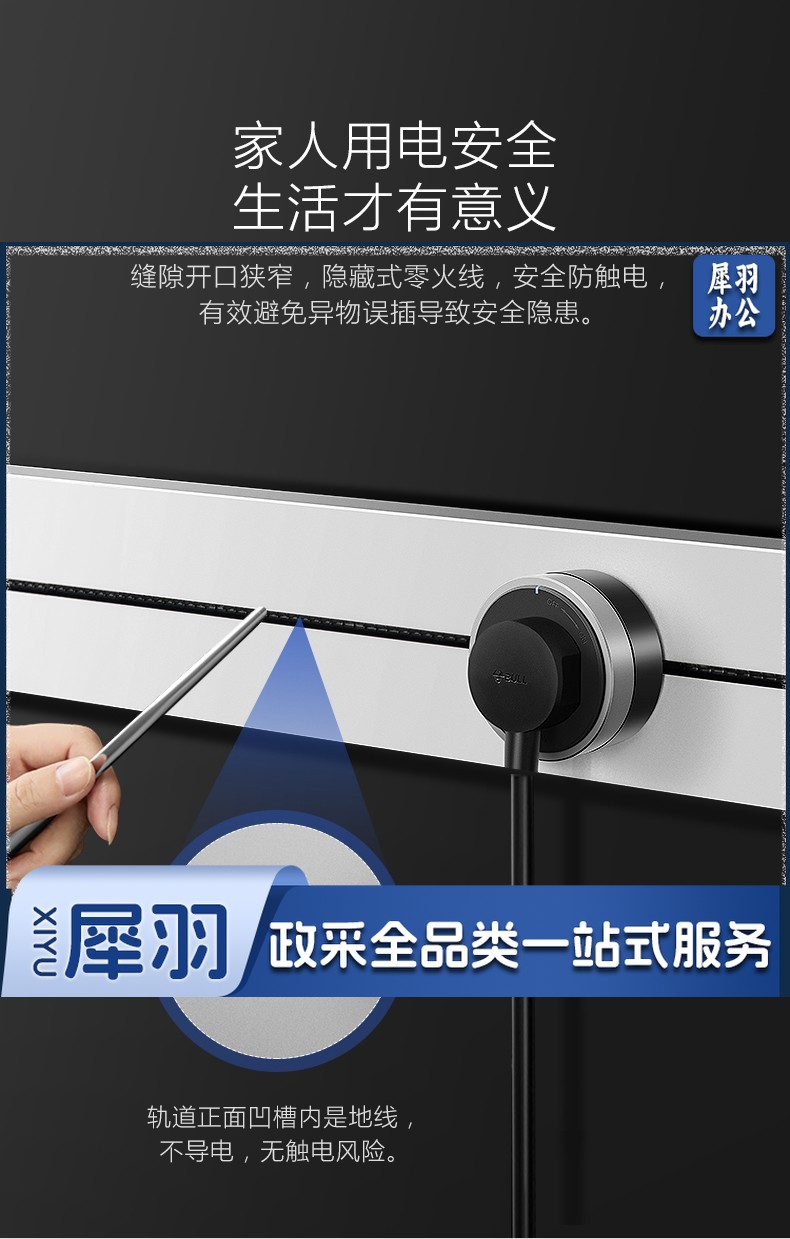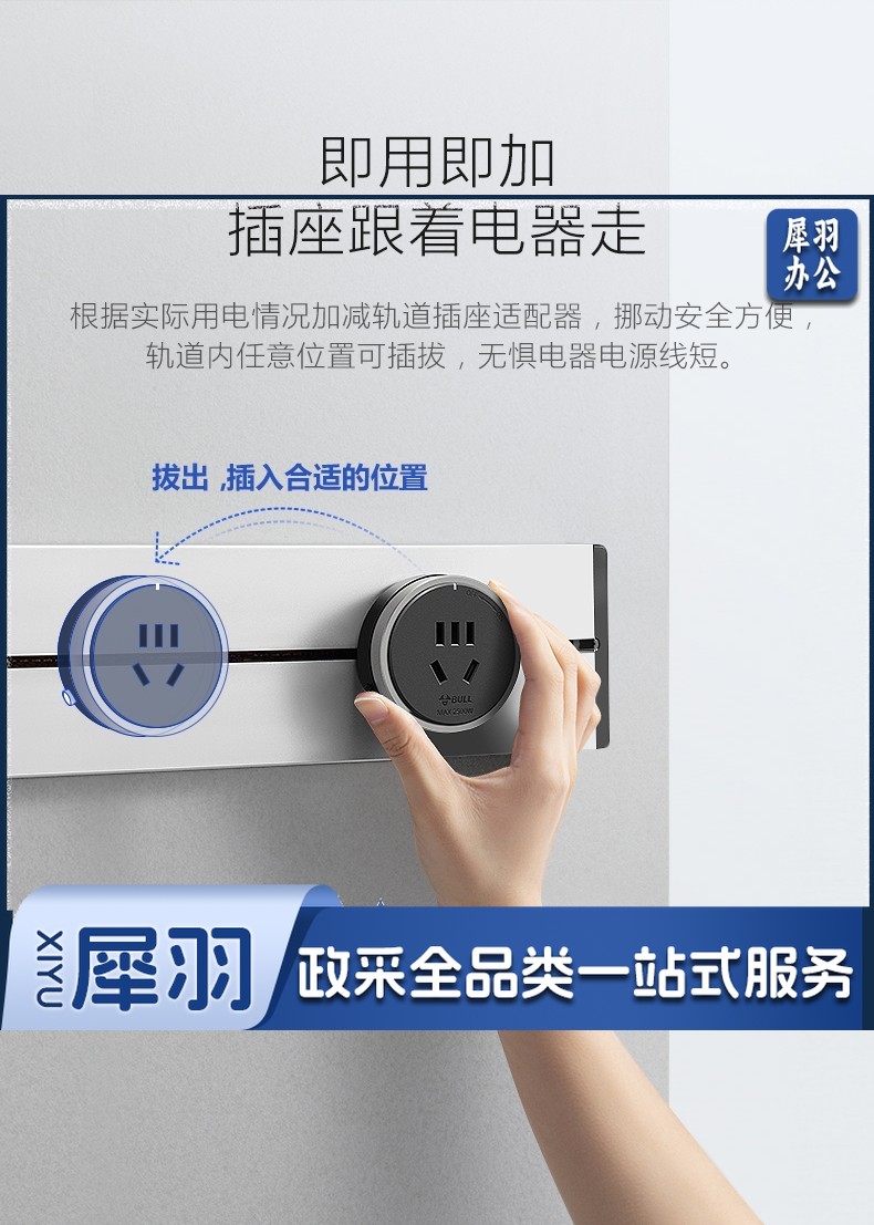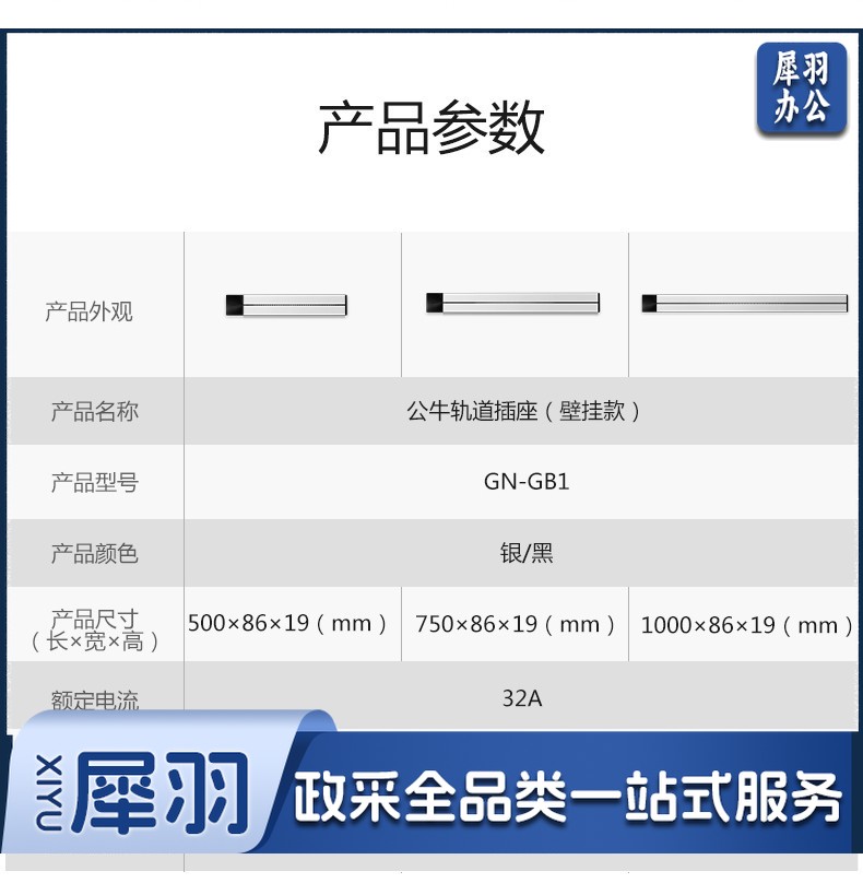 公牛 电力轨道插座 墙壁挂式明装插线板 无线插排多功能电源桌面接线板 银色 GB1(明装+4个适配器)750mm