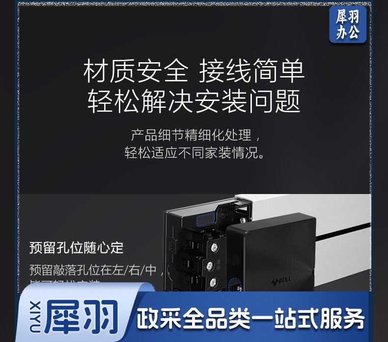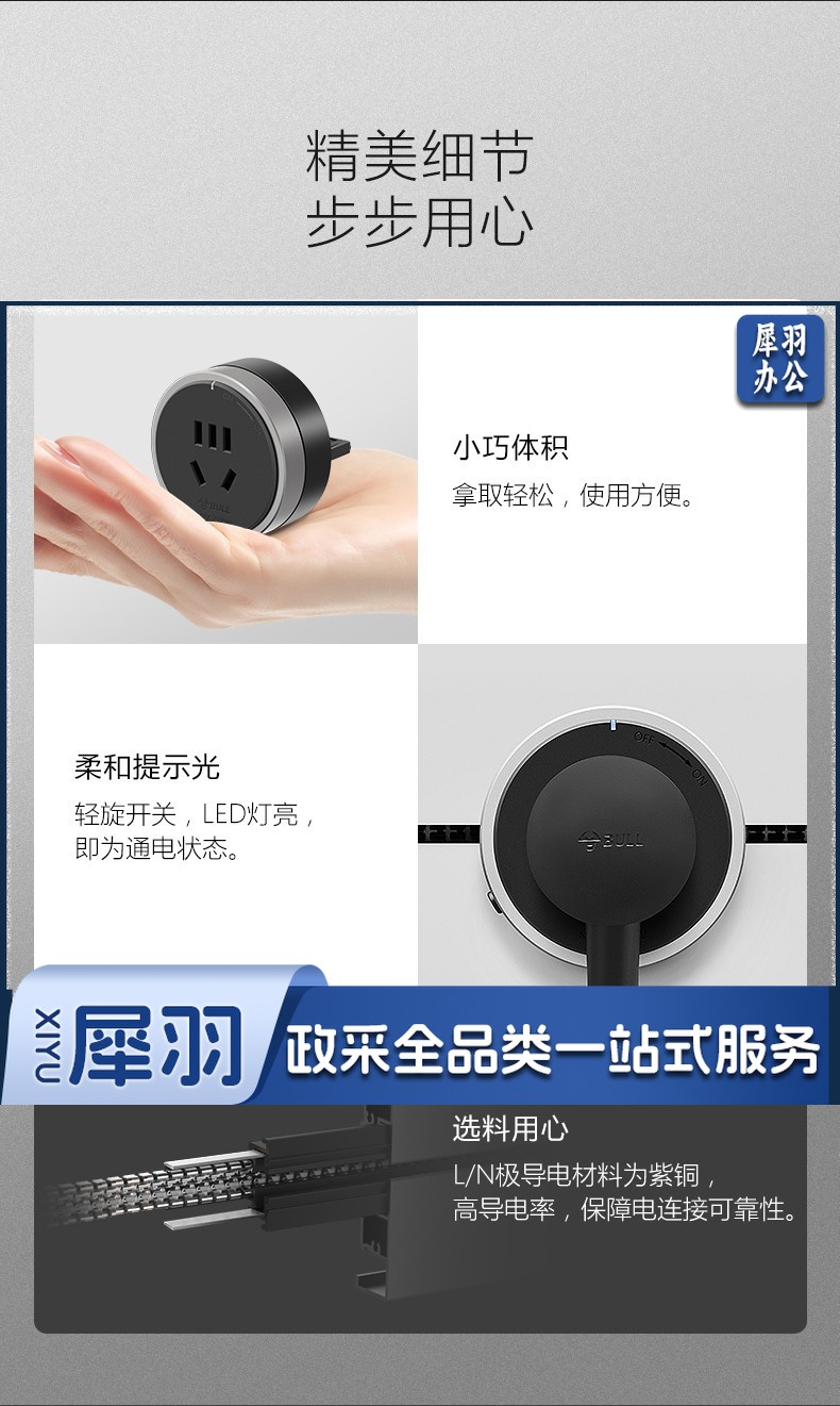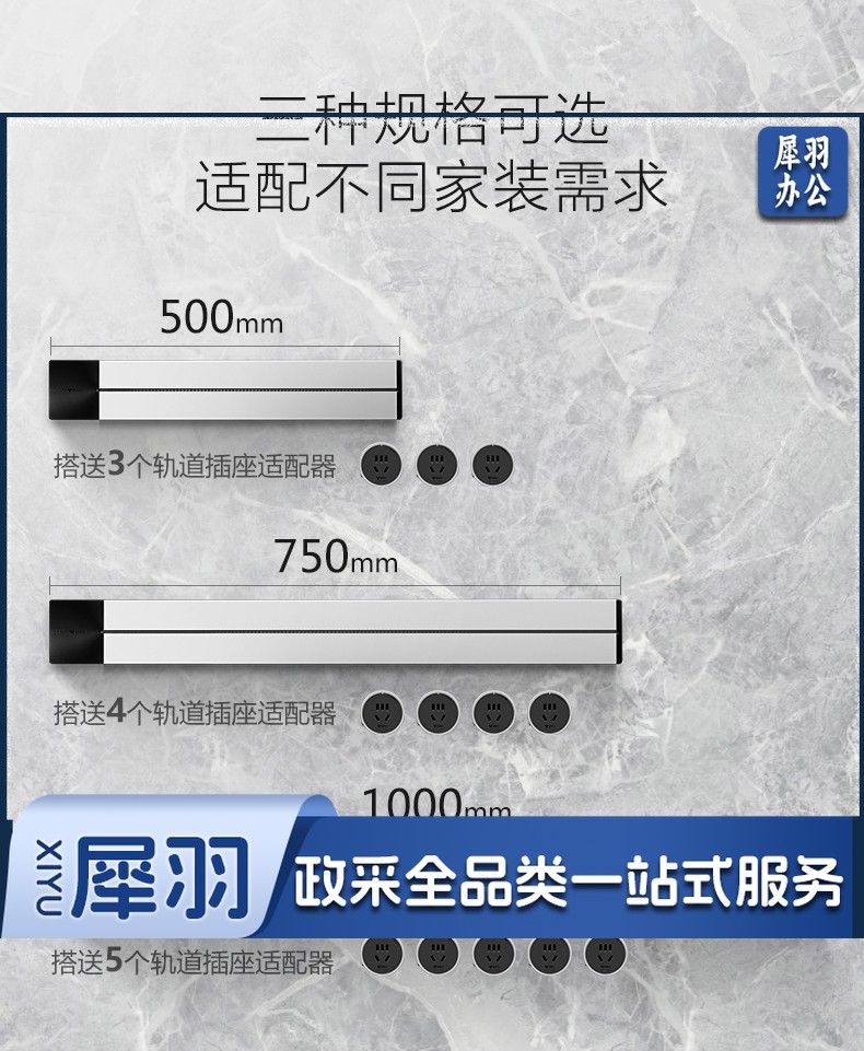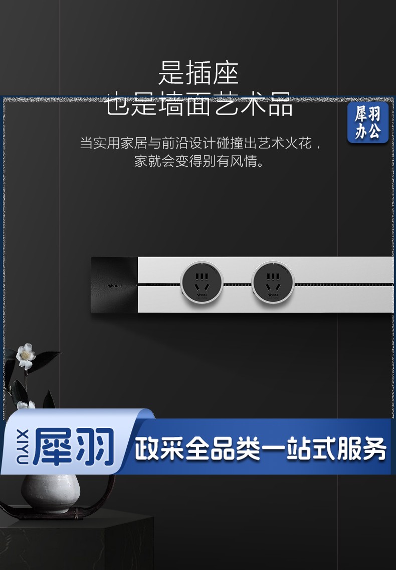 公牛 电力轨道插座 墙壁挂式明装插线板 无线插排多功能电源桌面接线板 银色 GB1(明装+4个适配器)750mm