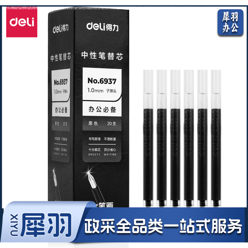 得力6937大笔画办公中性笔替芯1.0mm子弹头(黑)(支)