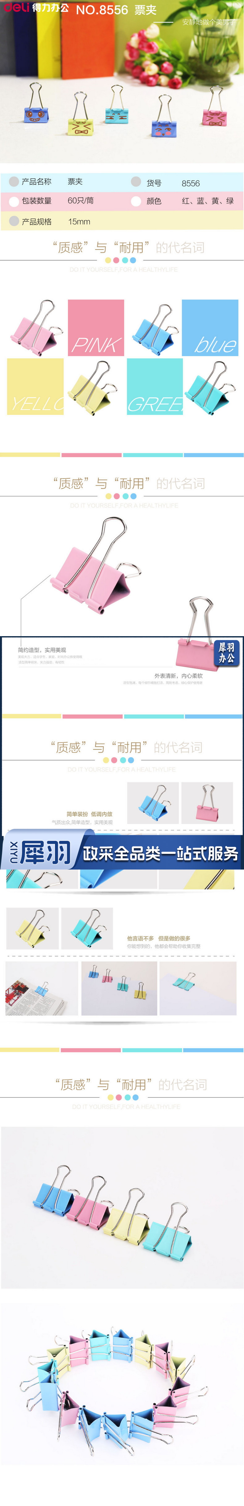 1100007331EA 得力 8556 筒装彩色长尾票夹 15MM 彩色 60筒/箱