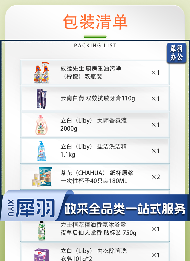 立白 悦享生活礼包A(油污净*2+牙膏110g+立白大师香氛、洗洁精1.1kg、洗衣皂+茶花纸杯+欧莱雅润发乳+力士沐浴露+奇强面巾纸+蓝月亮洗衣液)