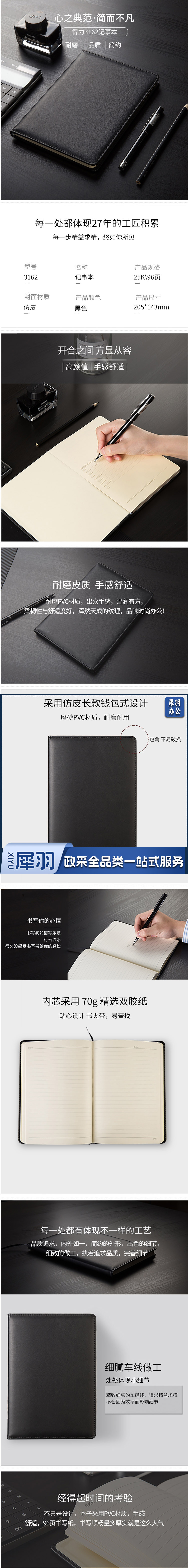 得力/deli 3162 25K/96页 皮面本(单位:个) 黑色