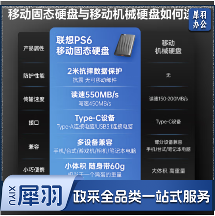 联想(Lenovo)512GB 移动固态硬盘(PSSD)Type-cUSB 3.1 550MB/s高速SSD双接口 手机直连 笔记本 PS6