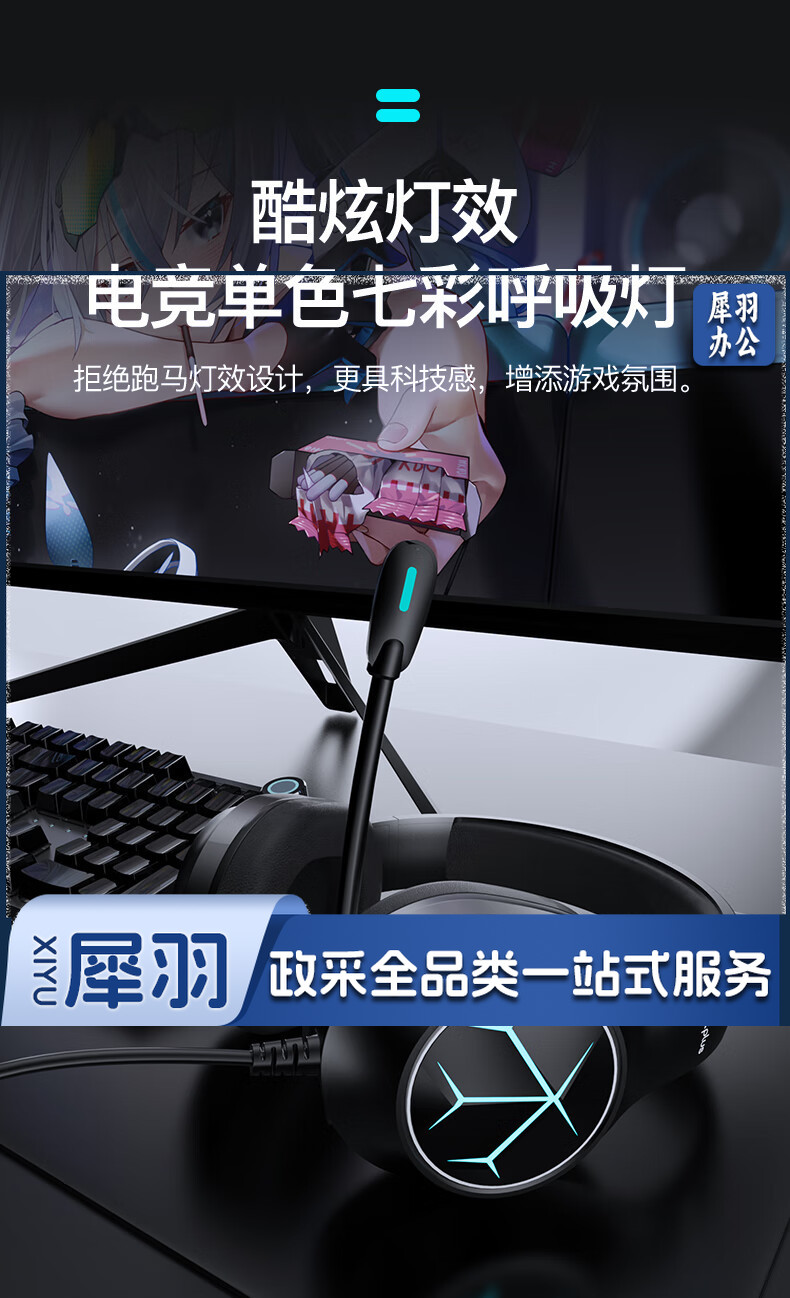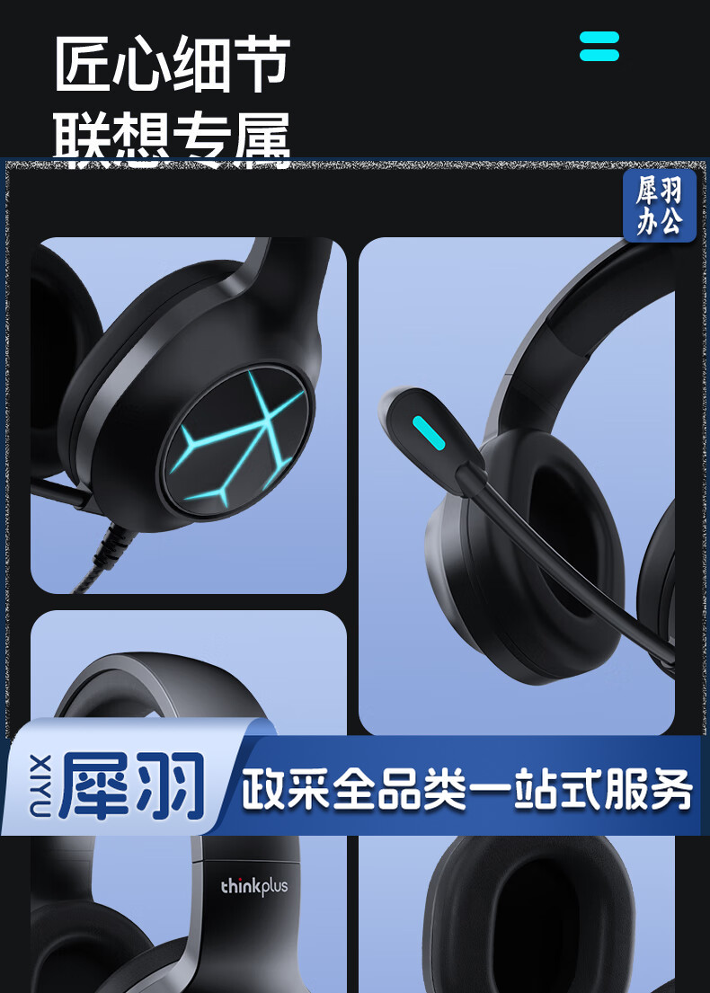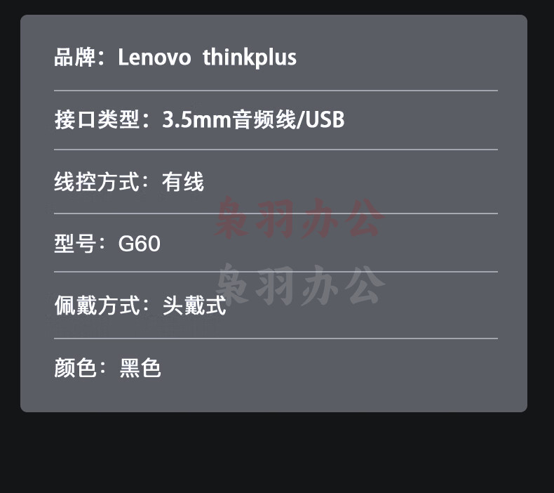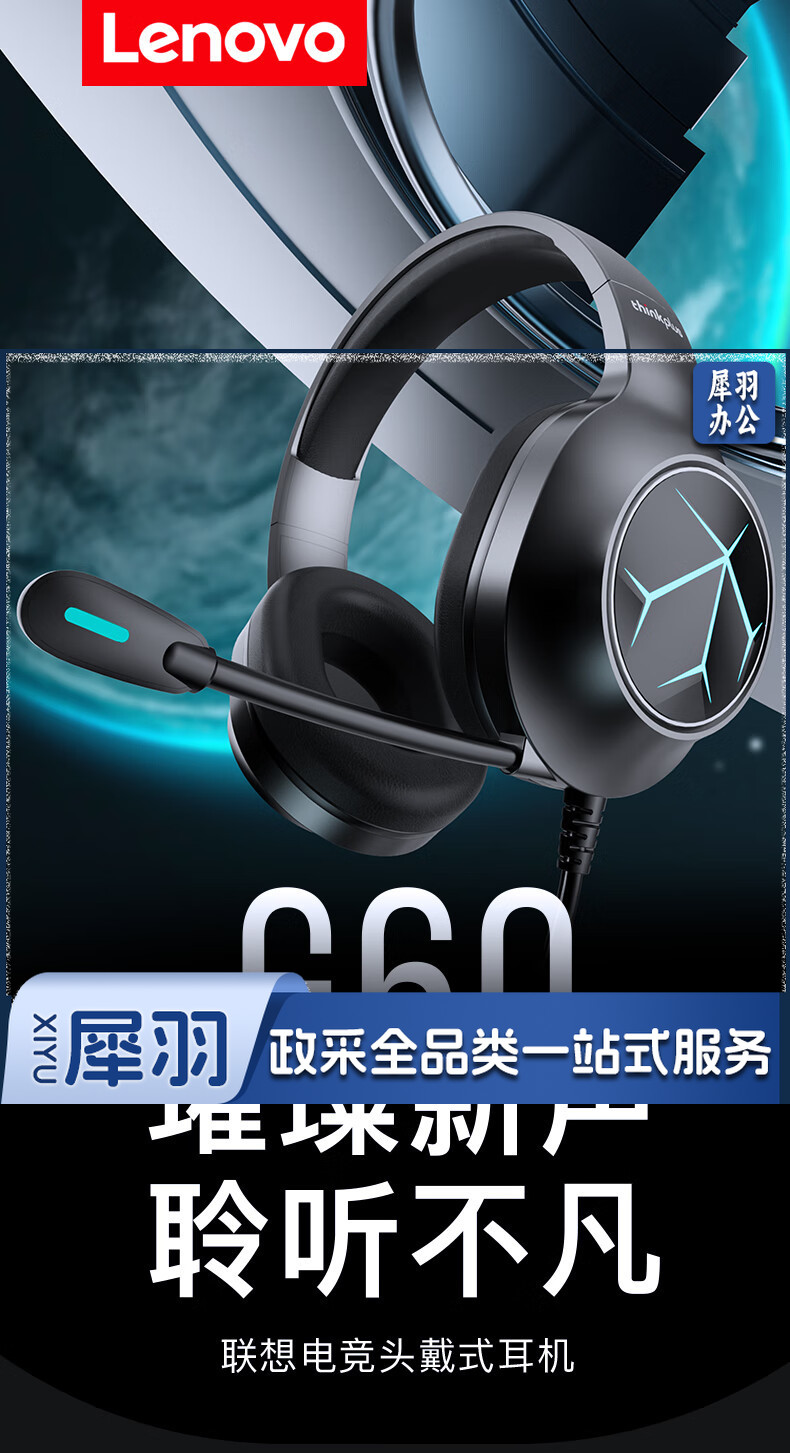 联想(Lenovo)游戏电脑耳机头戴式 电竞耳麦有线耳机佩戴舒适 吃鸡网课学习游戏笔记本台式机通用 G60单孔笔记本(usb+单3.5)