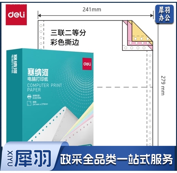 得力塞纳河N241-3电脑打印纸(1/2CS彩色撕边)(1000页/盒)(盒)