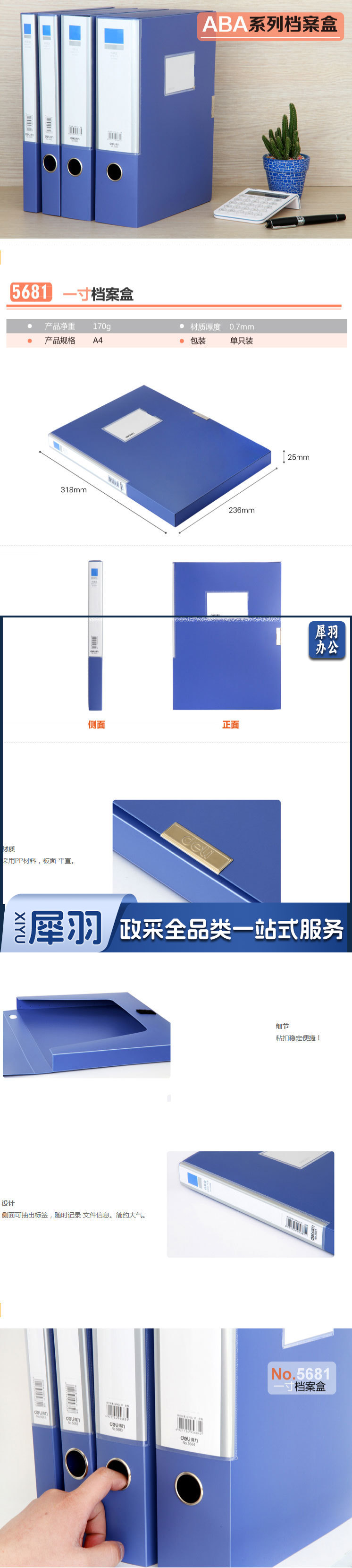 得力(deli)5681 档案盒 蓝色文件夹239*317*25mm