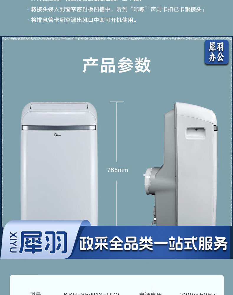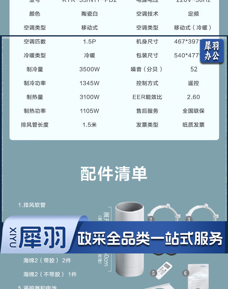 美的(Midea)1.5匹可移动空调冷暖一体机 家用厨房空调免安装免排水空调 KYR-35/N1Y-PD2