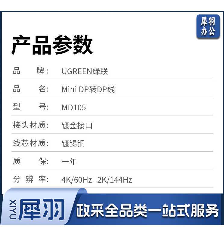 绿联 Mini DP转DP转接线 雷电口4K迷你dp转换器线 适用苹果笔记本连接显示器 黑色1.5米 MD105 10477