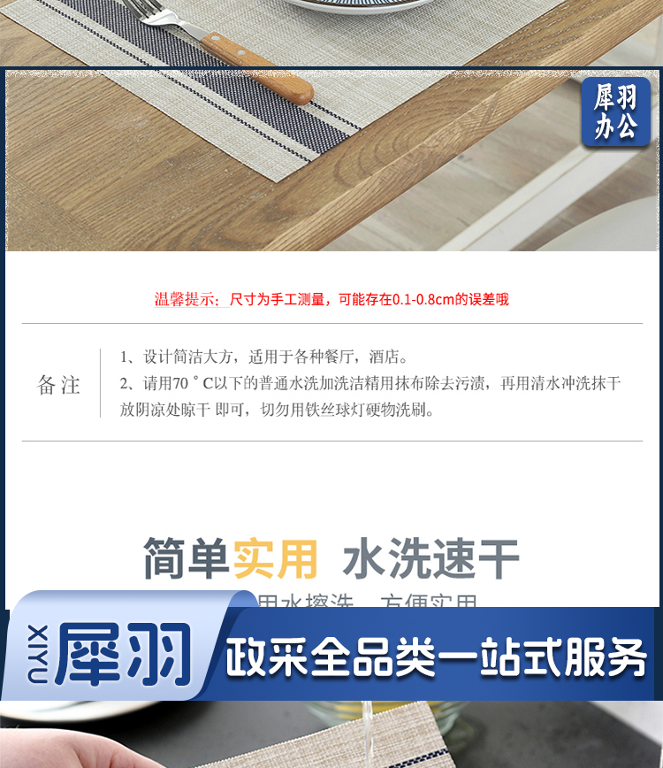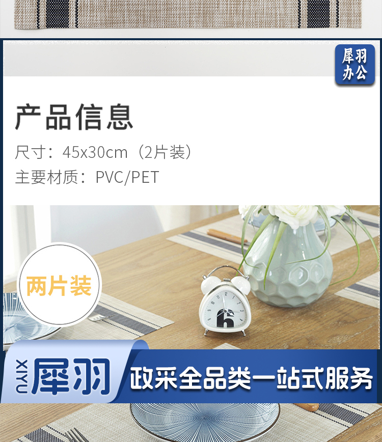 餐桌垫 西餐垫防水防油 隔热垫锅垫防烫垫 茶几桌布PVC餐垫 45*30cm 简约条纹2片装