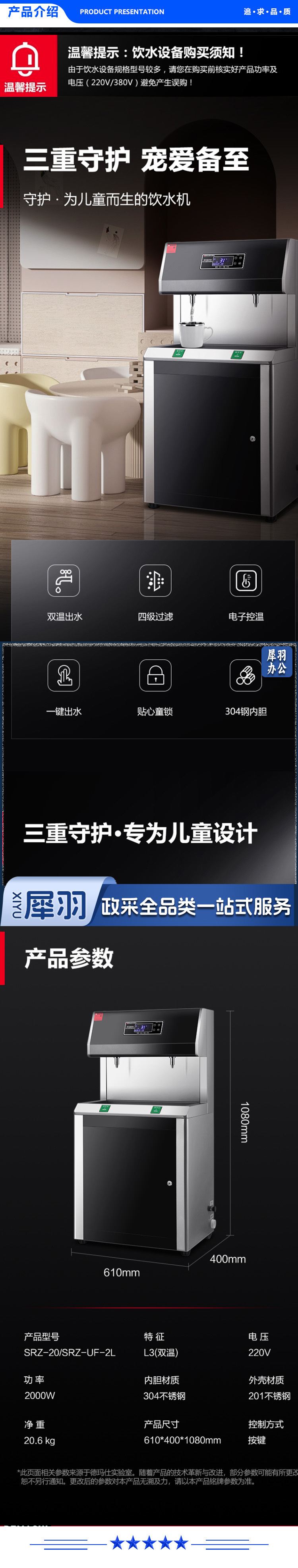 德玛仕 DEMASHI SRZ-20/SRZ-UF-2L L3 饮水机 学校商用净水机 商用烧水机 不锈钢直饮水机